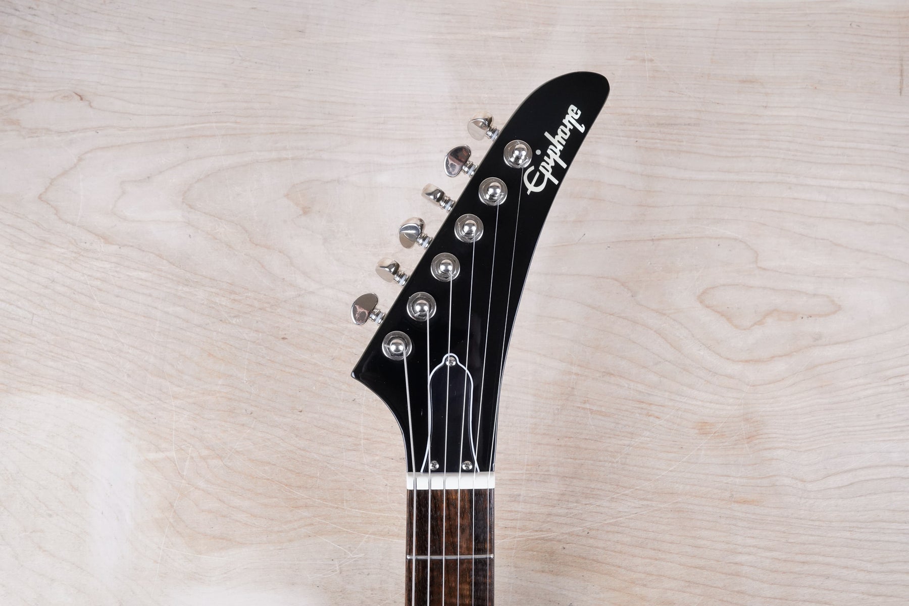 Make: Epiphone Model: Limited Run Explorer Year: 2020 Fretboard Material: Rosewood Fretboard Radius: 12" Scale length: 24.75" Weight: 7.98 pounds Nut Width: 1.67" Neck Width at 12th fret: 2.06" Neck Thickness 1st fret: 0.81" Neck Thickness at 12th fret: 0.90" Case/bag: Includes the pictured OHSC Made in China
