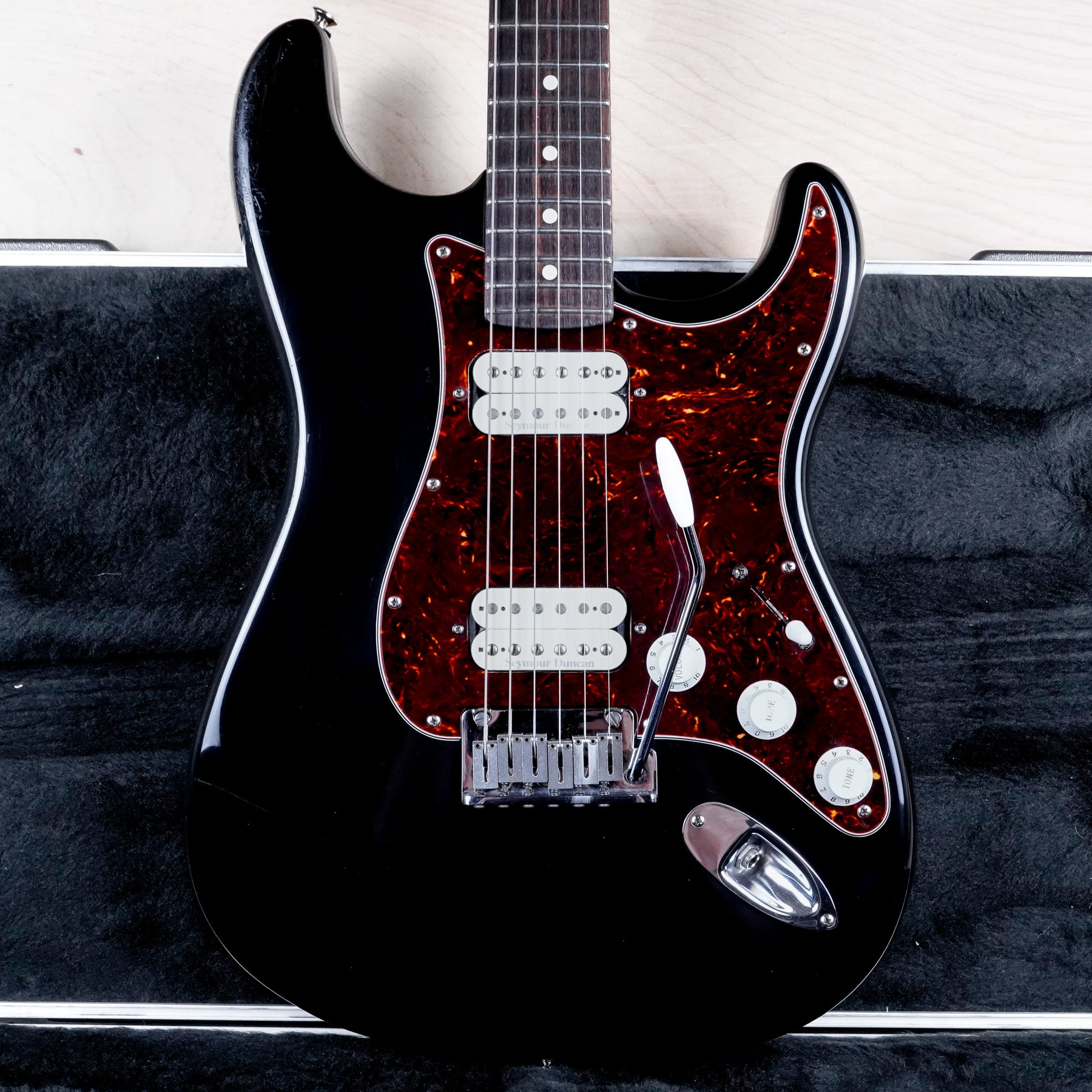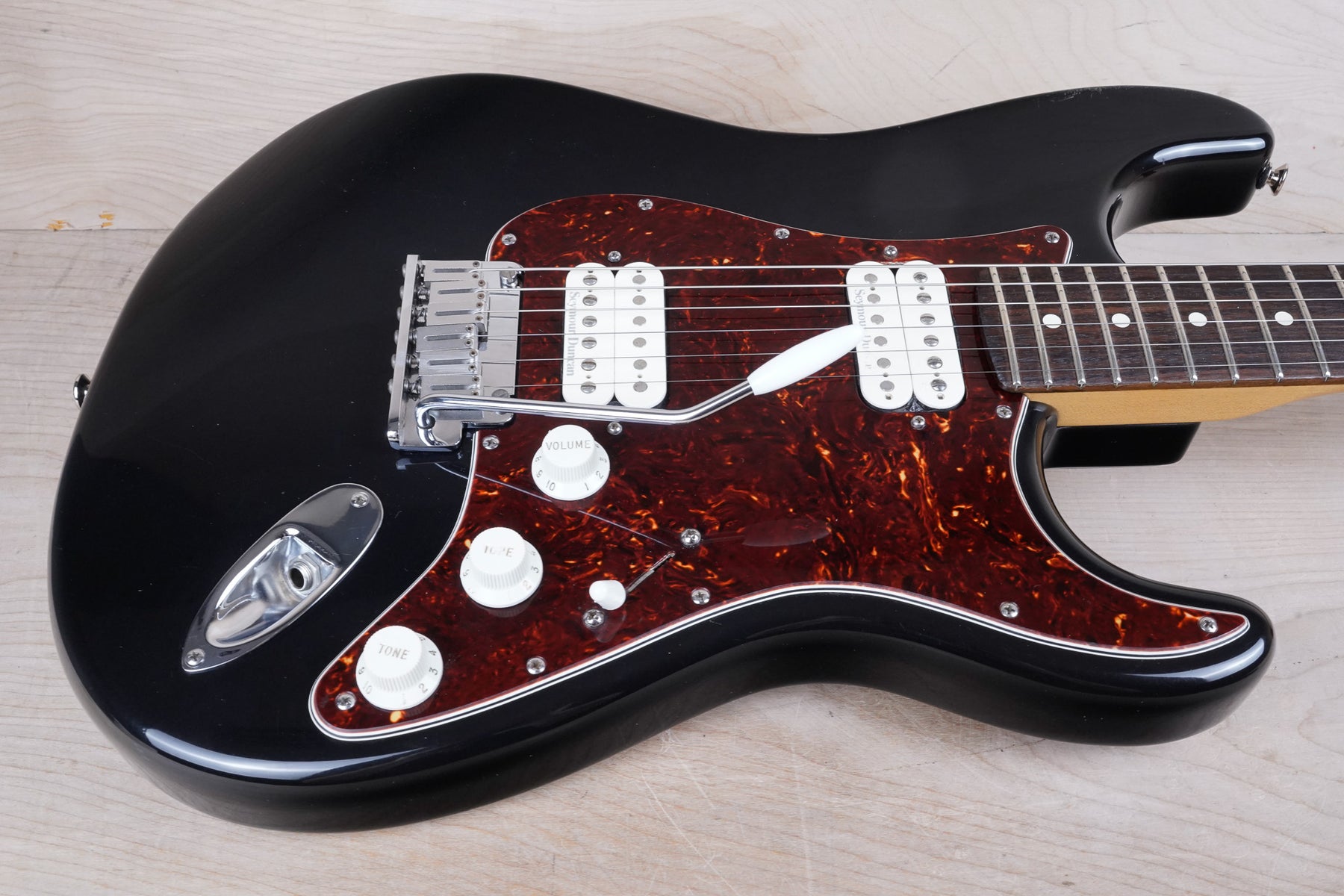 This Fender Big Apple Stratocaster plays and sounds great! This guitar is comprised of an alder body, "C" shape maple neck, and rosewood fretboard. The pickups include a Seymour Duncan Pearly Gates bridge humbucker and a Seymour Duncan 59 in the neck position.