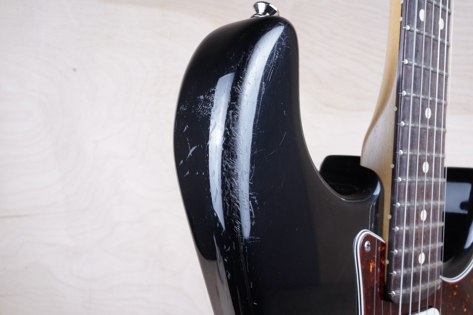 This guitar does show some cosmetic wear from over the years that includes various surface scratches, scuffs, and dents throughout the body with additional dings along the back of the neck and headstock. There's also some hairline cracks shown on the surface of the pickups and the hardware is starting to show some light tarnish from over time. The frets are used and have been professionally leveled by an experienced technician. All of the electronics work as they should.