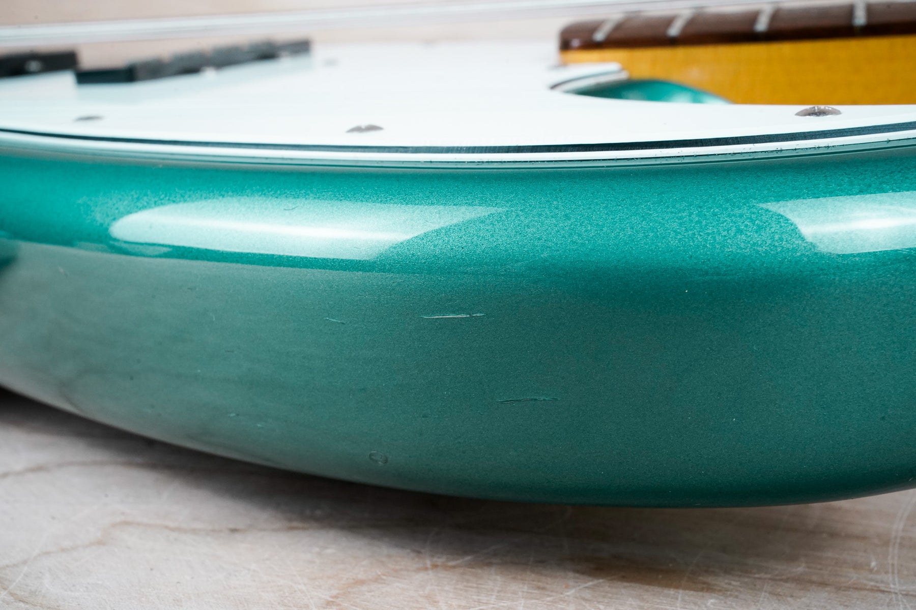 This bass does show some cosmetic wear from over the years that includes various surface scratches, scuffs, and dents throughout the body with additional light scratches and small dings along the back of the neck and headstock. The hardware also shows normal tarnishing from over time. The frets play great exhibiting only light play wear and the electronics work as they should.