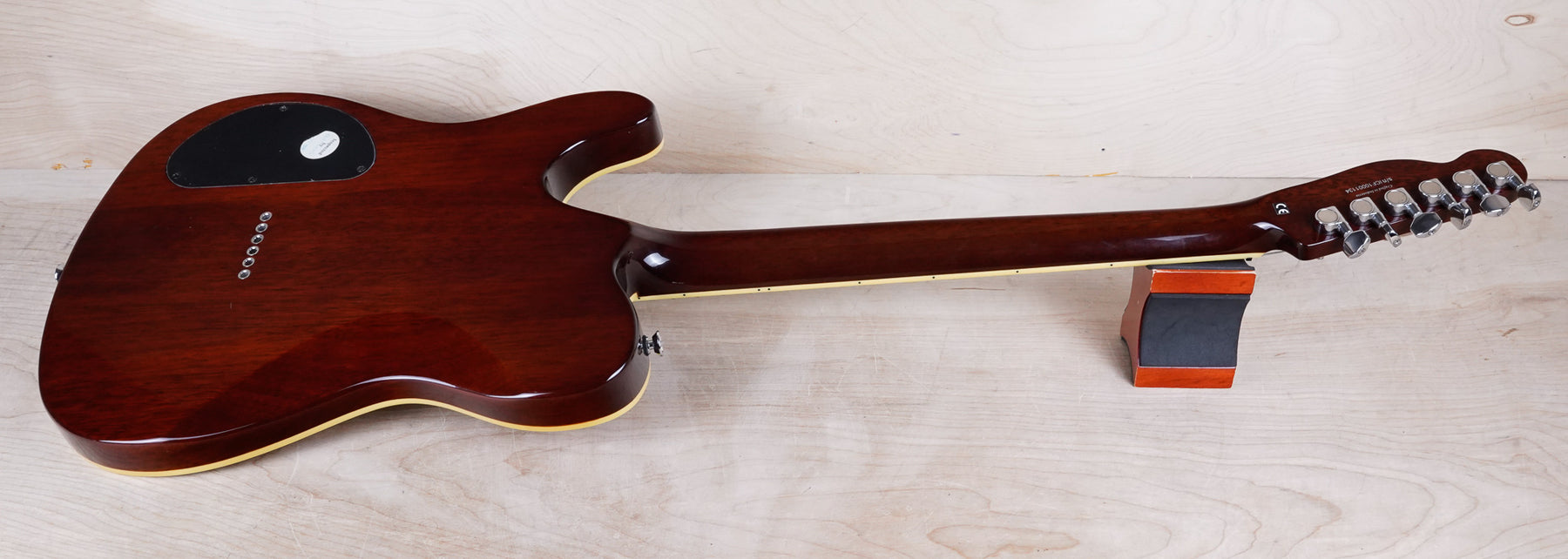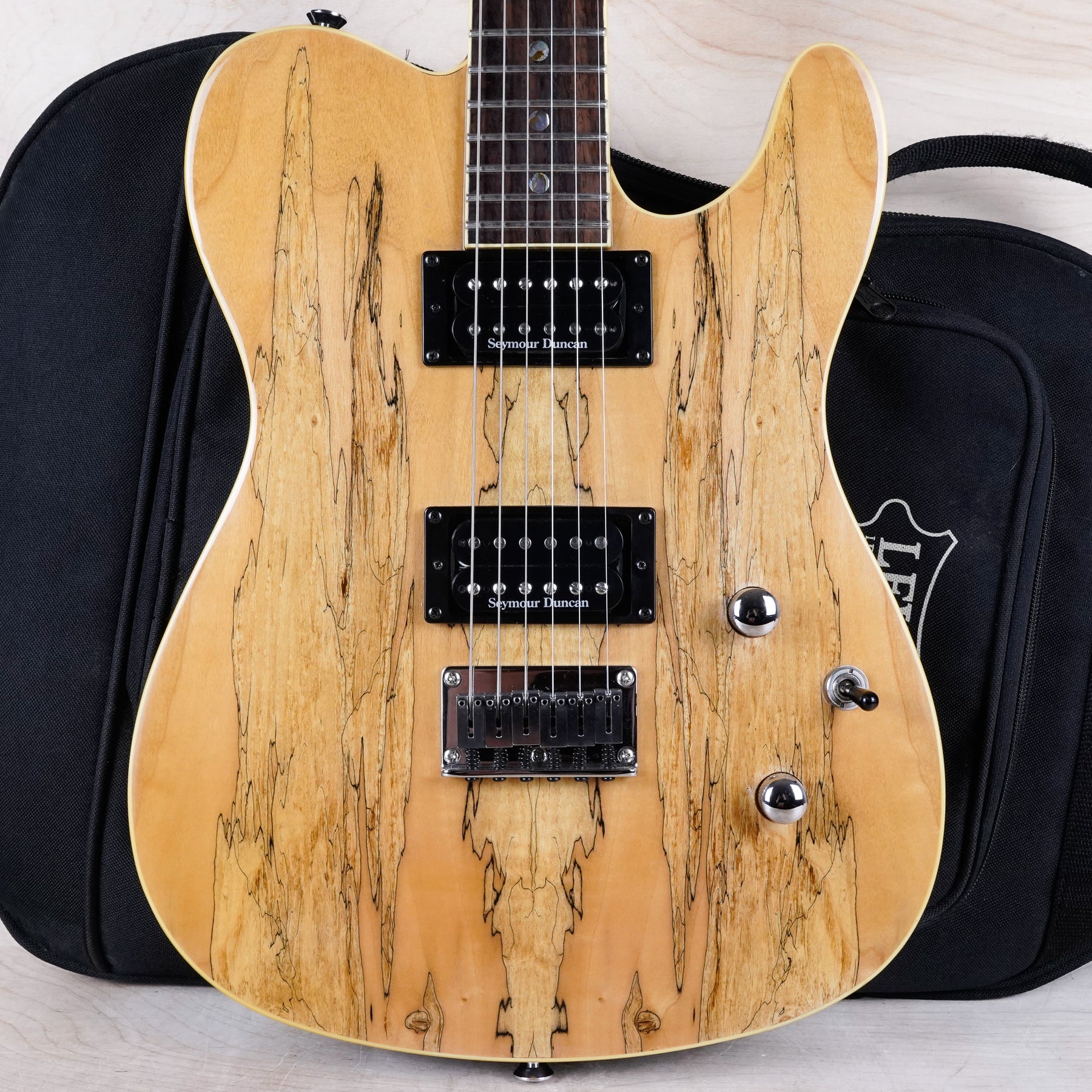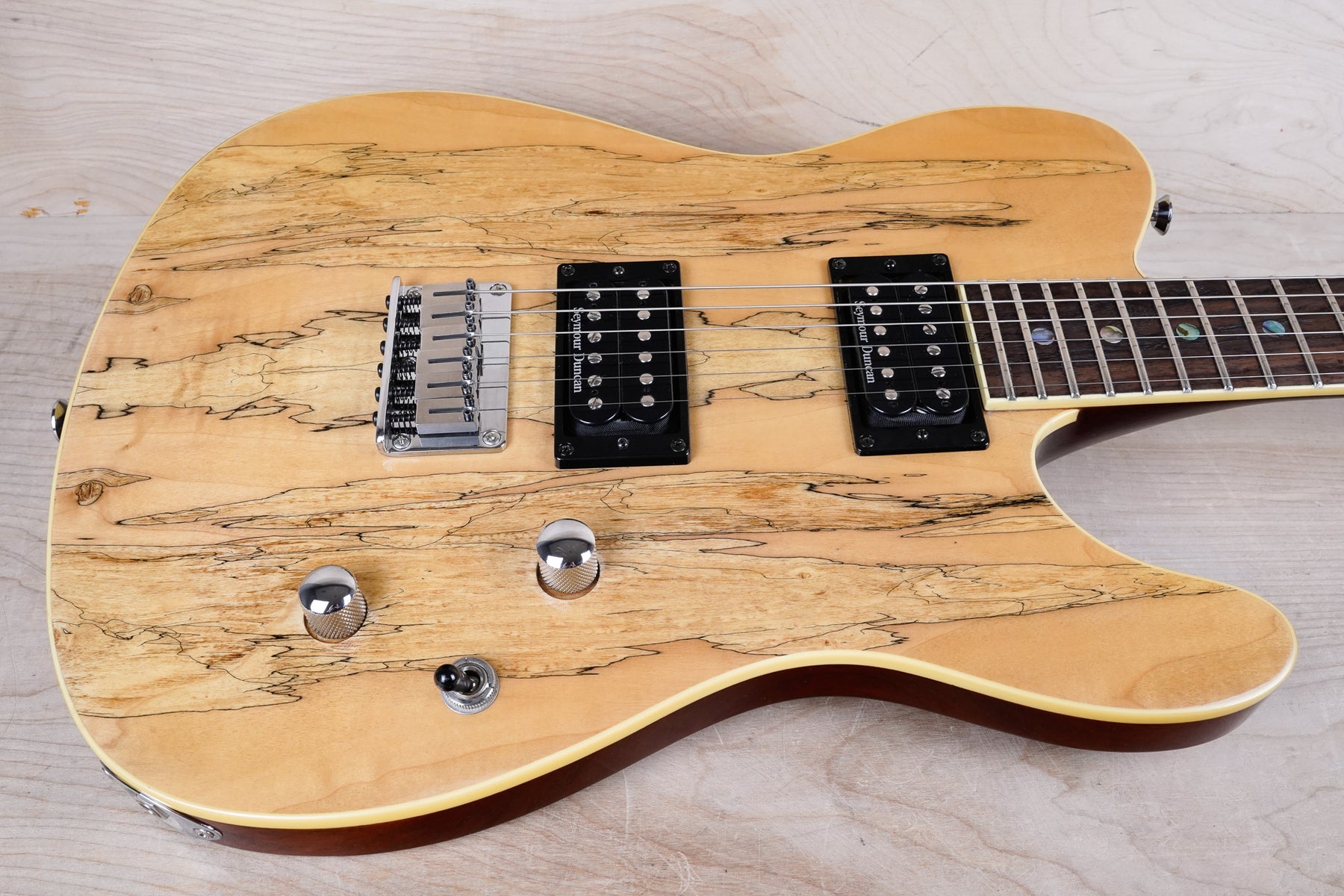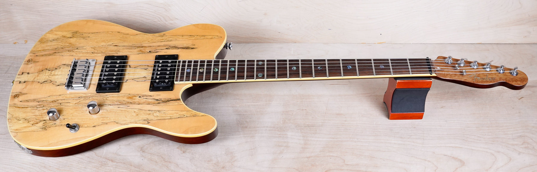 This Fender Special Edition Spalted Maple Telecaster plays and sounds great! The set neck is a really nice feature and the guitar is equipped with a pair of Seymour Duncan Humbuckers with push/pull coil tapping capabilities. The neck feels super slim and has a flatter radius.