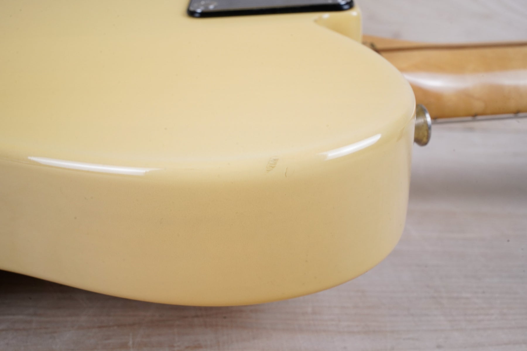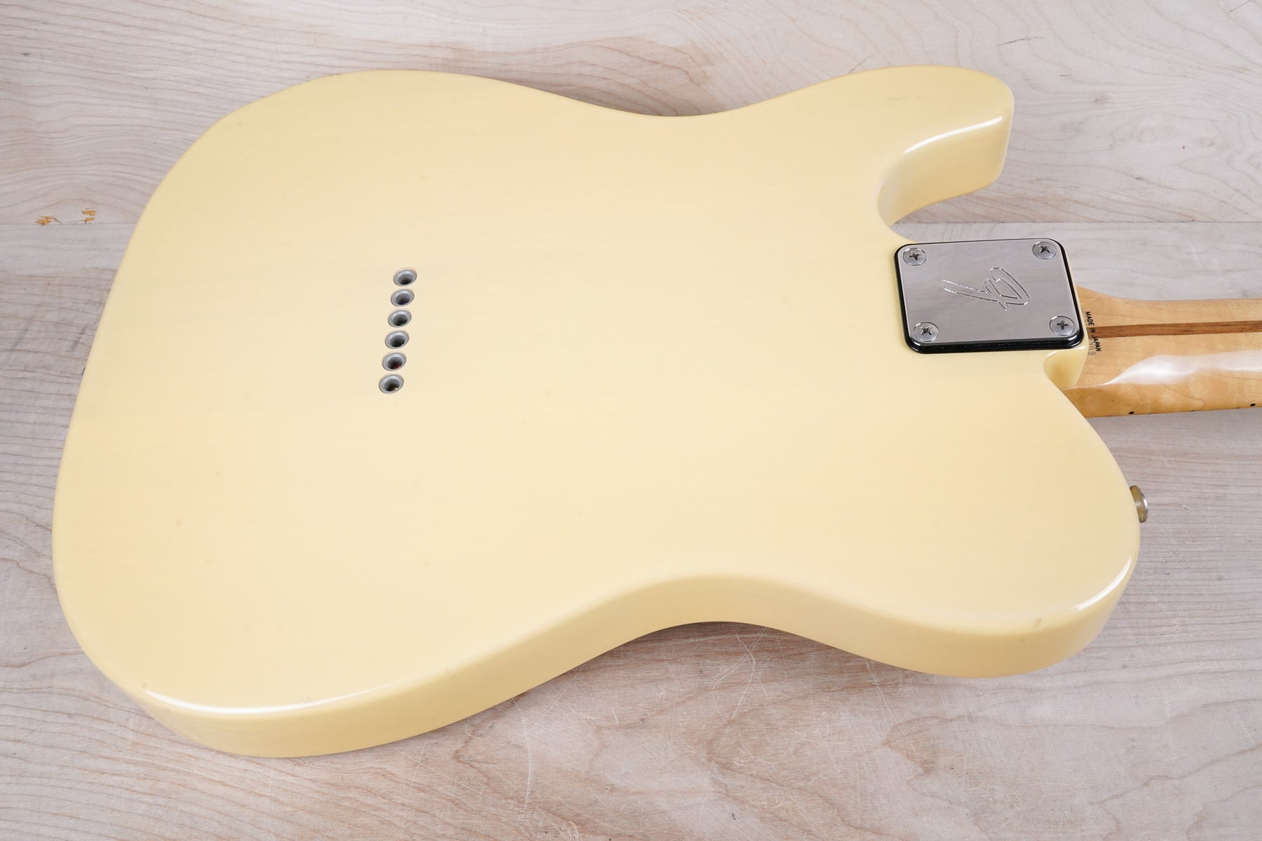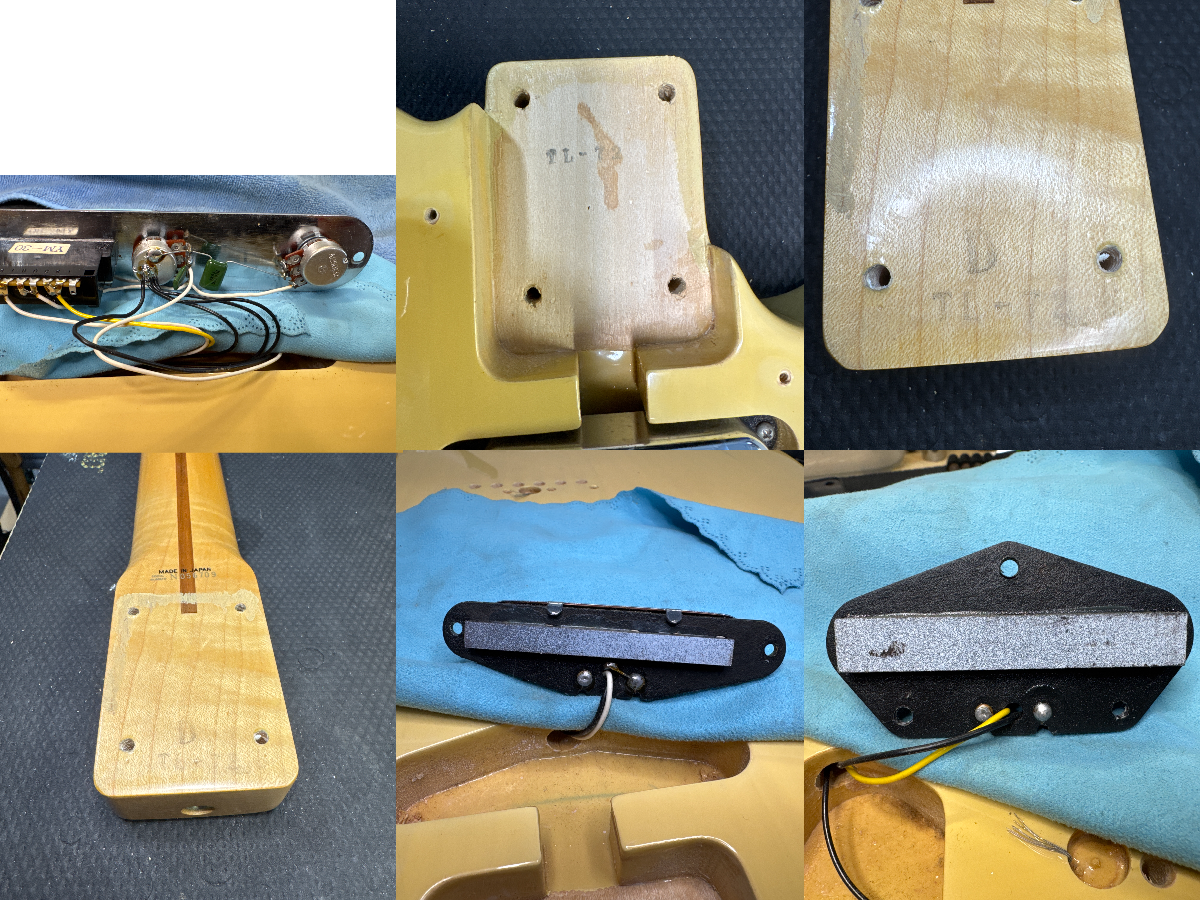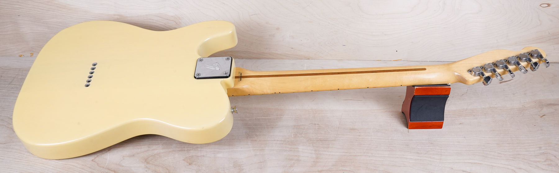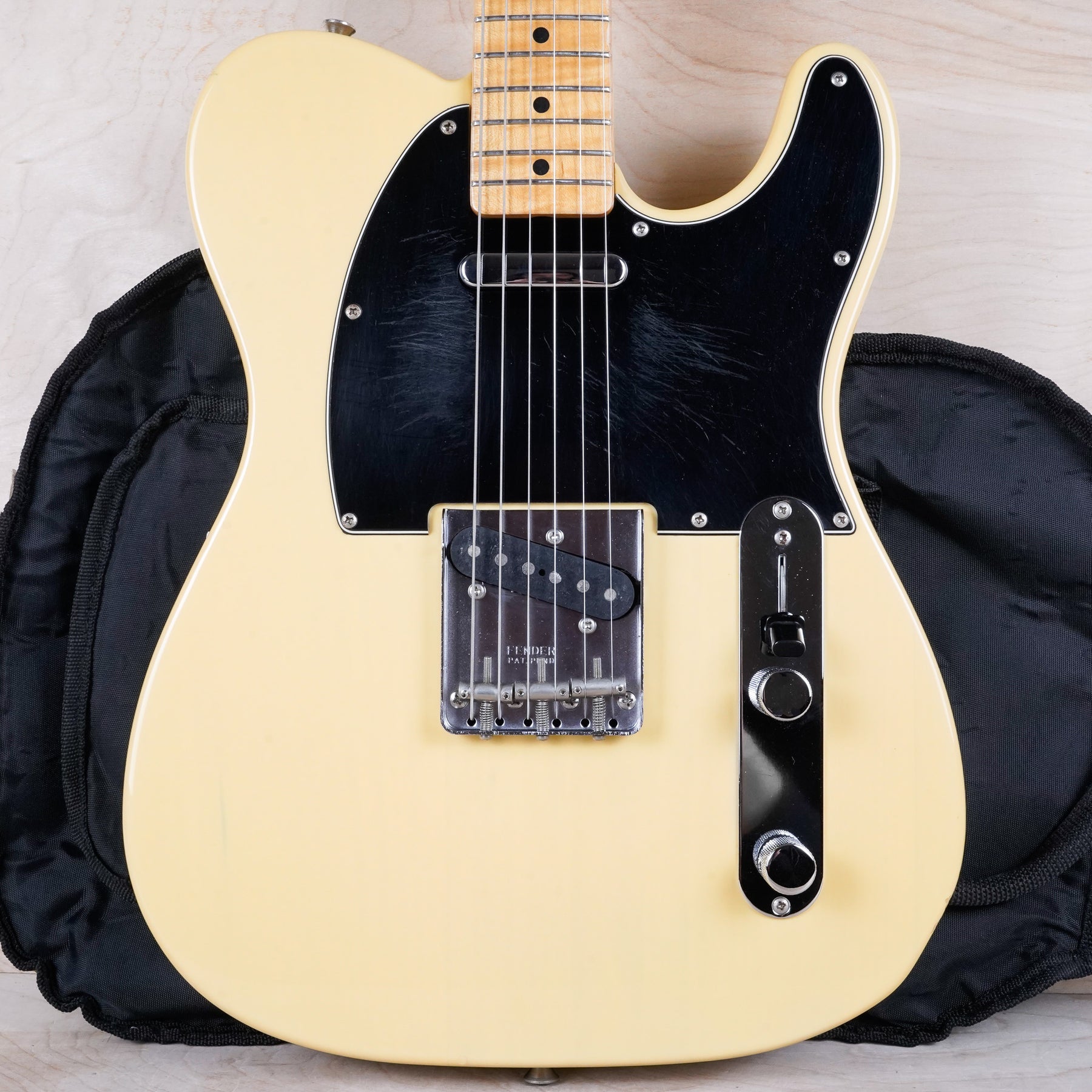 This guitar does show some cosmetic wear from over the years that includes various surface scratches, scuffs, and dents throughout the body with additional dings along the back of the neck and headstock. The off white blonde finish has aged from over time and the hardware shows normal tarnishing. The pickguard shows lots of rigorous scratches from the many years of play and there's some lacquer wear on the fretboard. The frets are used but still play great and the electronics work as they should.