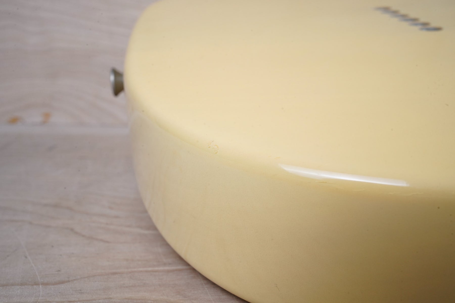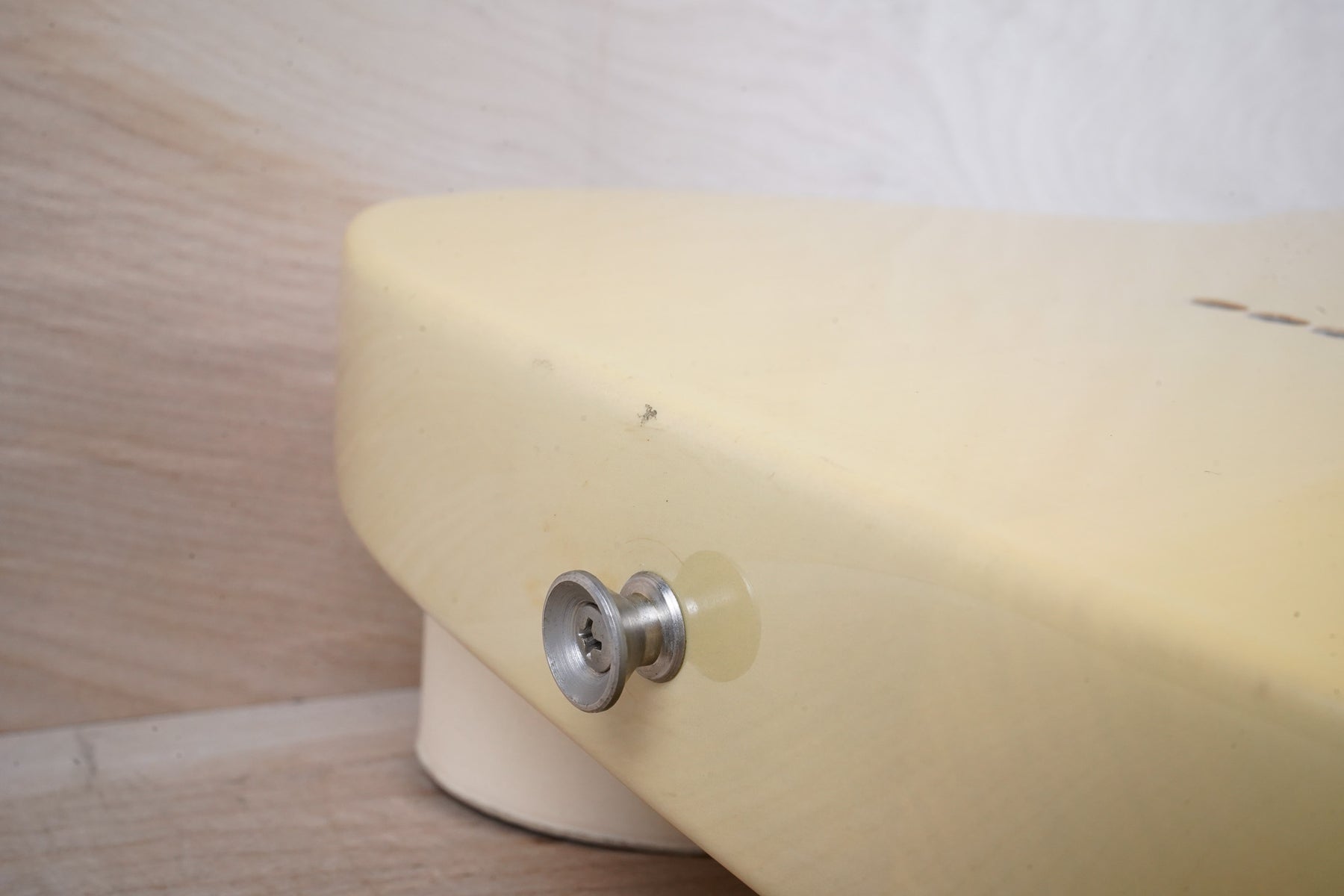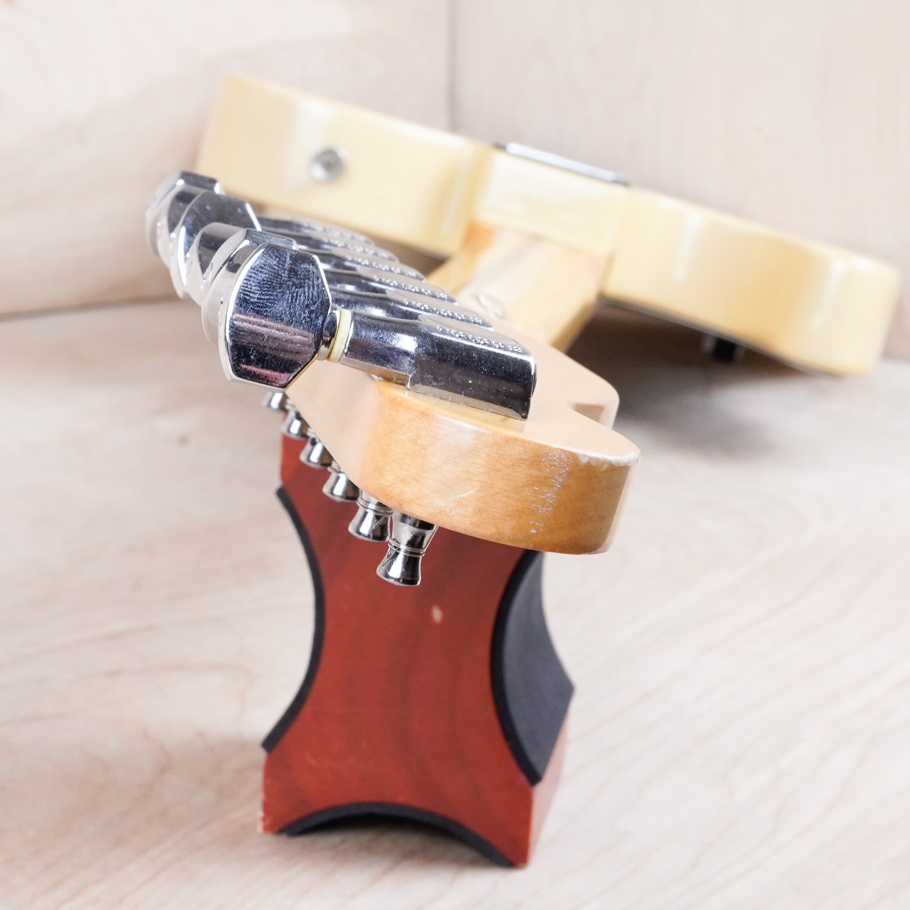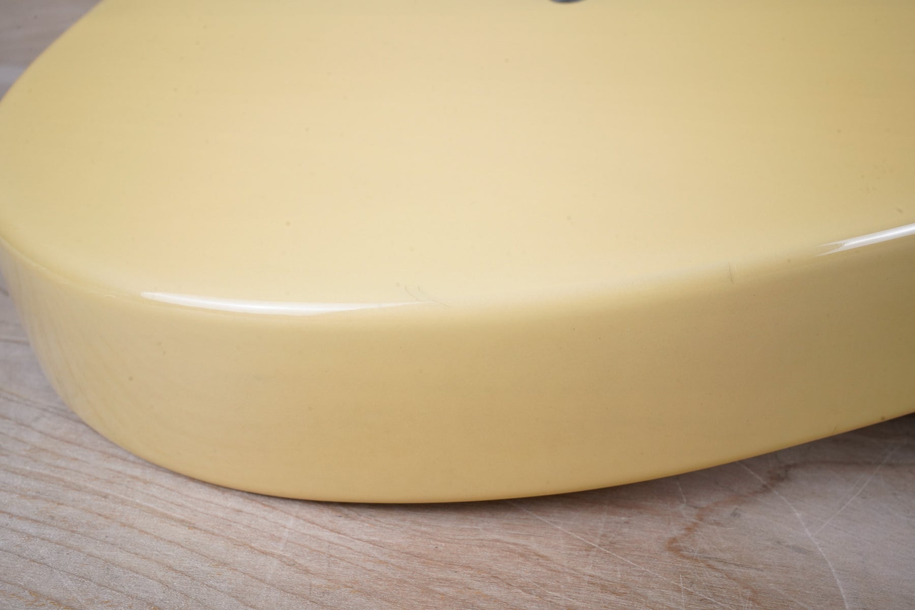 This guitar does show some cosmetic wear from over the years that includes various surface scratches, scuffs, and dents throughout the body with additional dings along the back of the neck and headstock. The off white blonde finish has aged from over time and the hardware shows normal tarnishing. The pickguard shows lots of rigorous scratches from the many years of play and there's some lacquer wear on the fretboard. The frets are used but still play great and the electronics work as they should.