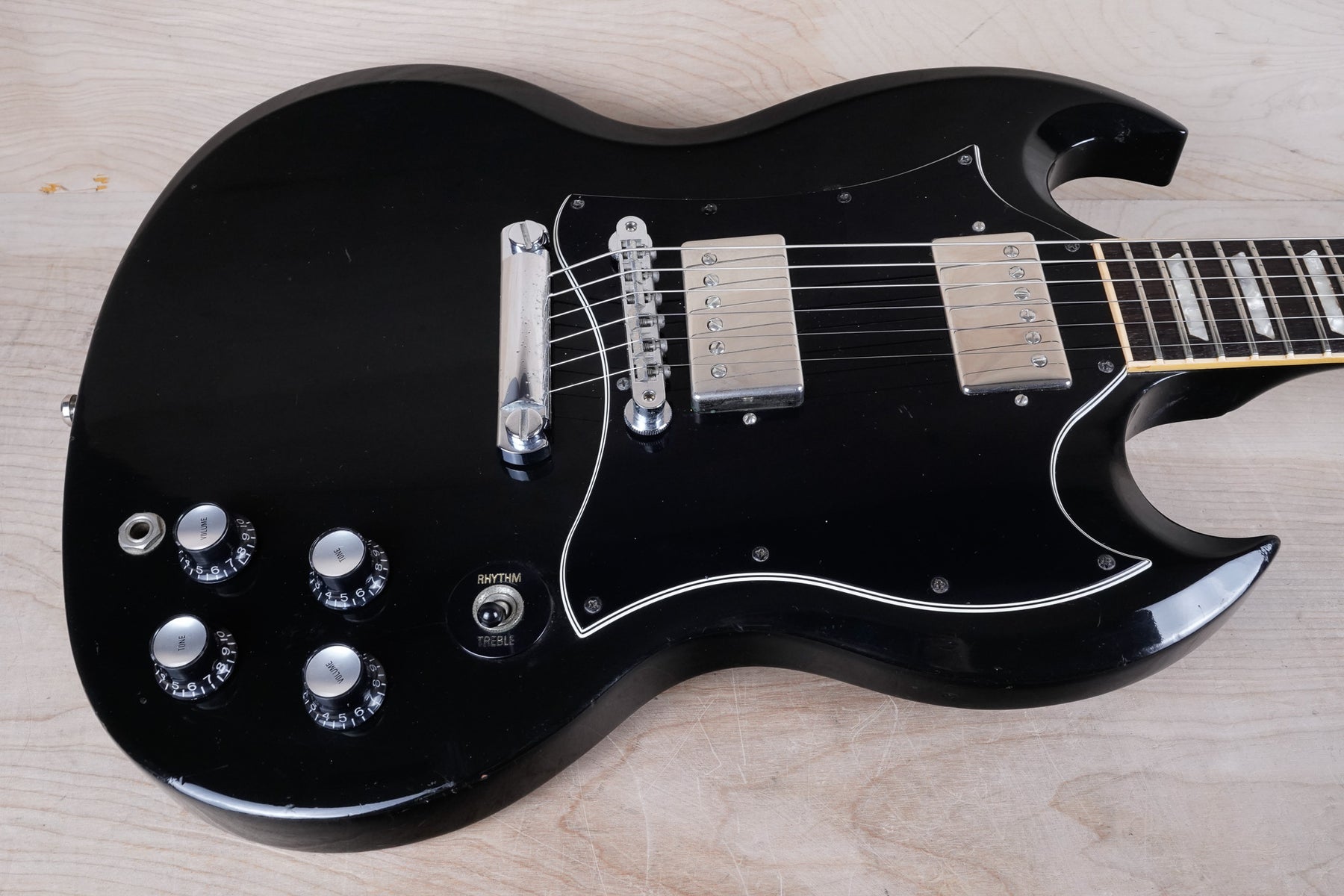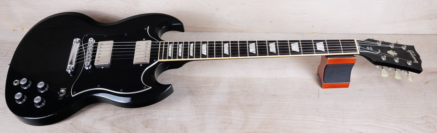 This 1995 Gibson SG Standard plays and sounds great! This guitar has been modded quite a bit, including a tasteful upgrade to Seymour Duncan SH-1/SH-2 humbuckers, but it still retains the classic SG aesthetic. The neck has a slim '60s profile and feels very comfortable.