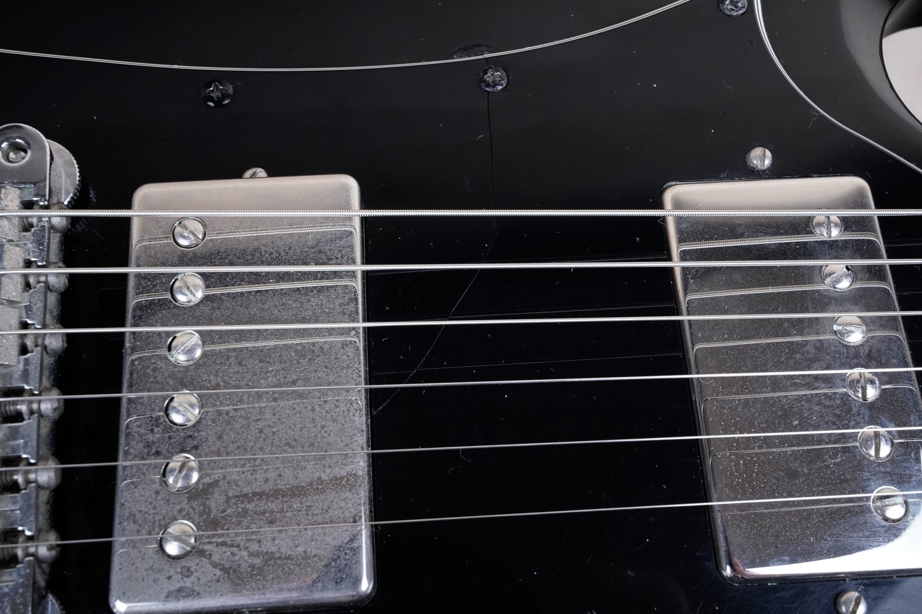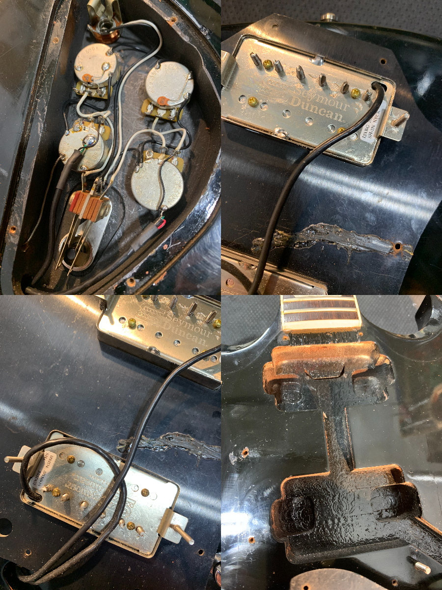 The pickups are a set of Seymour Duncan SH-1/SH-2 Humbuckers and the electronics include CTS pots. The knobs have also been replaced and the tuners have been swapped for Gotoh locking tuners.