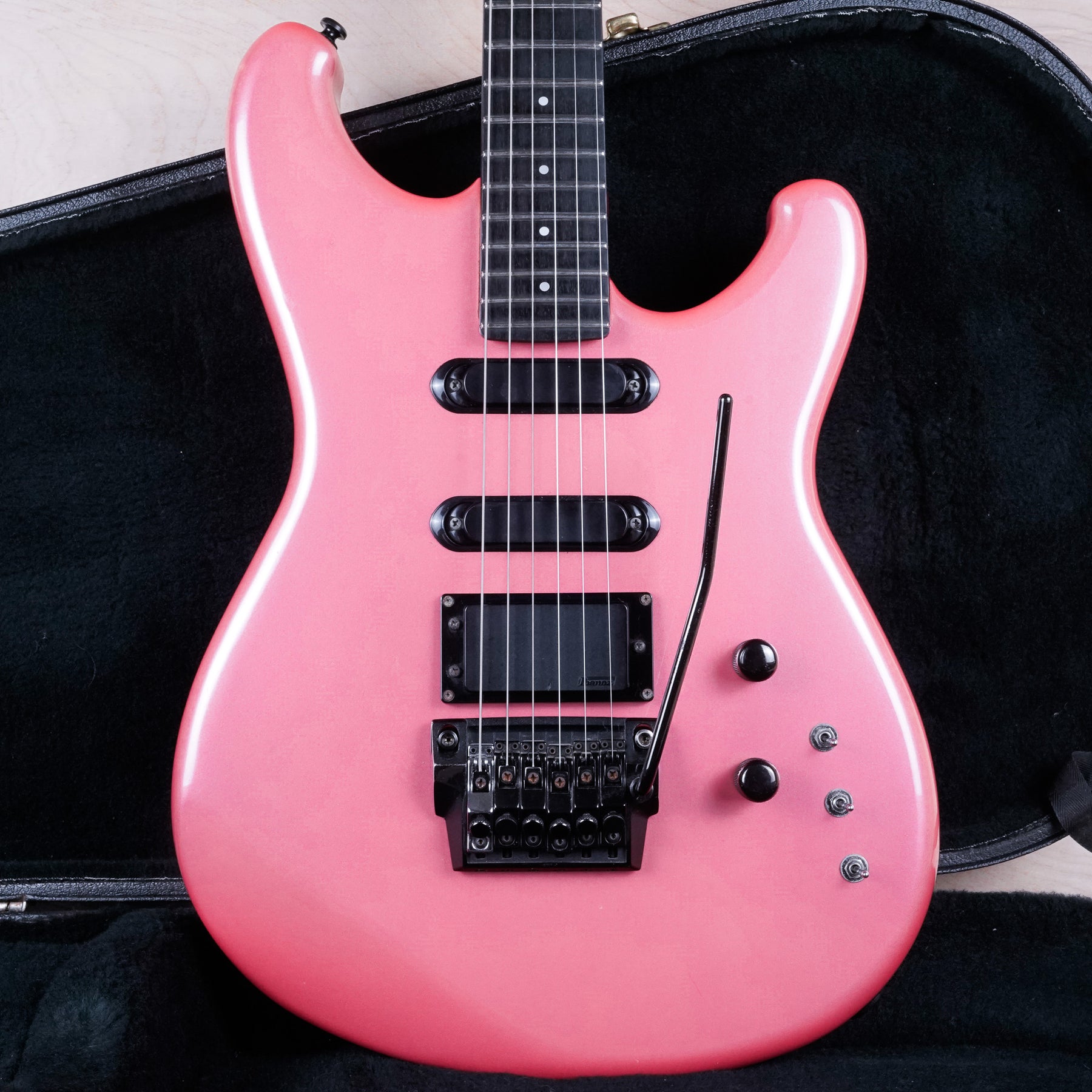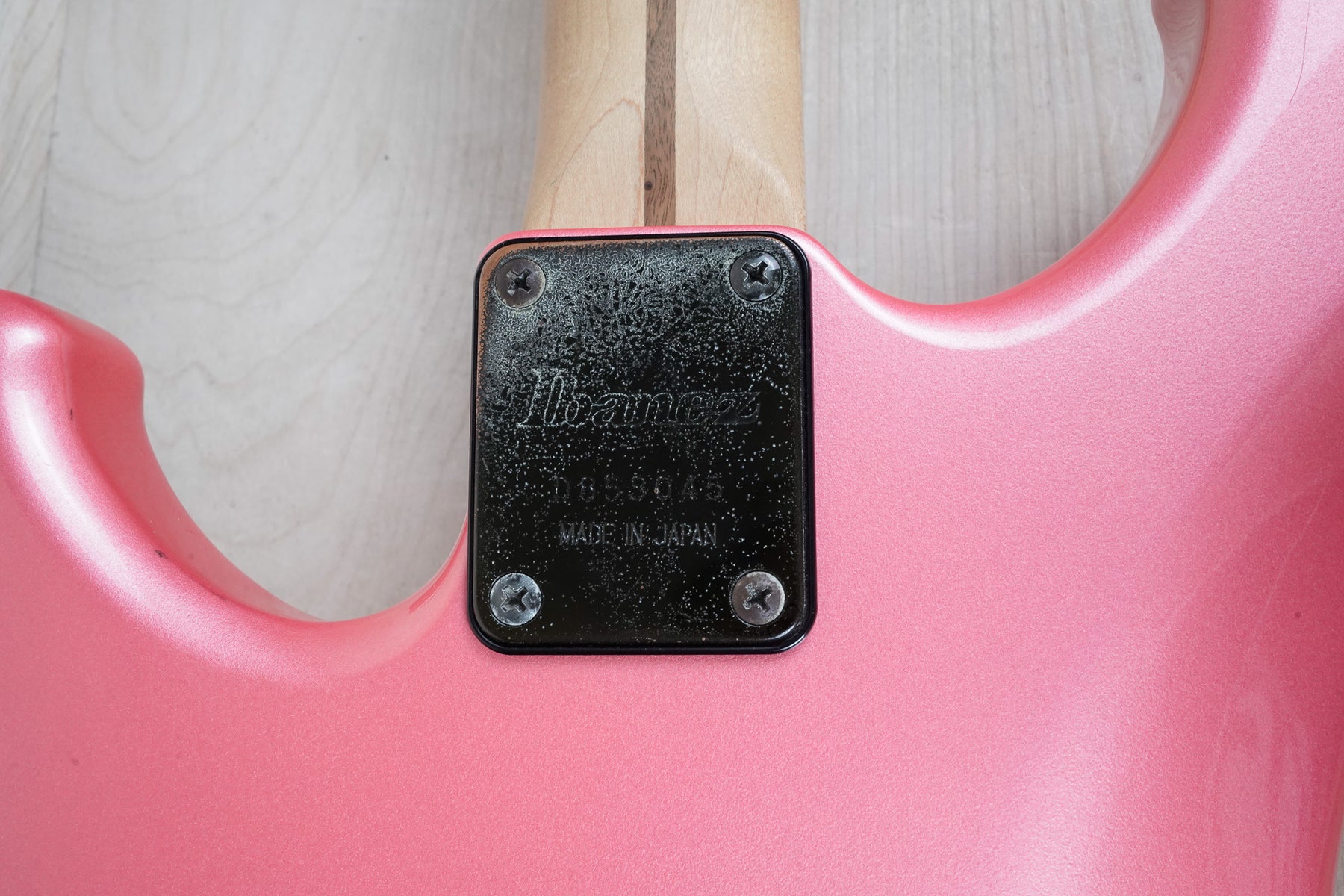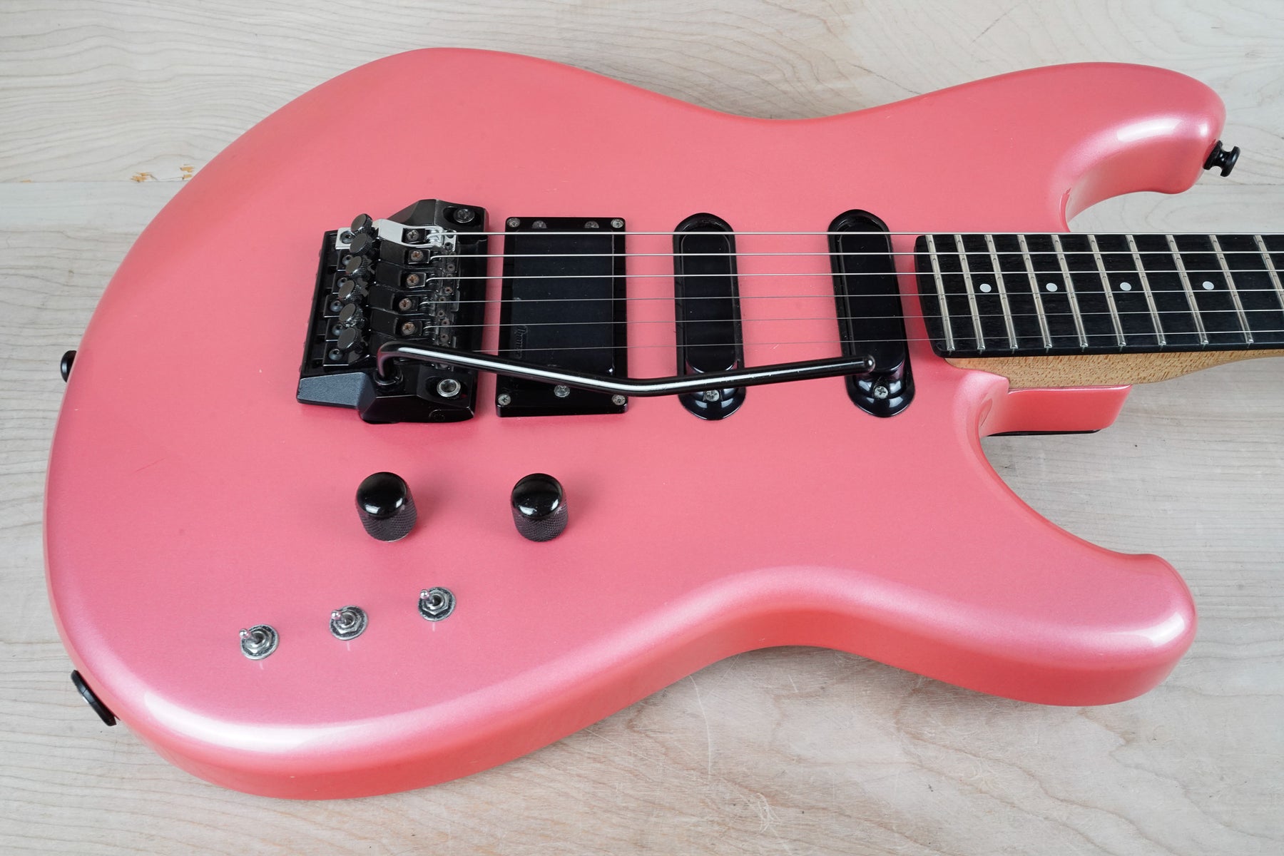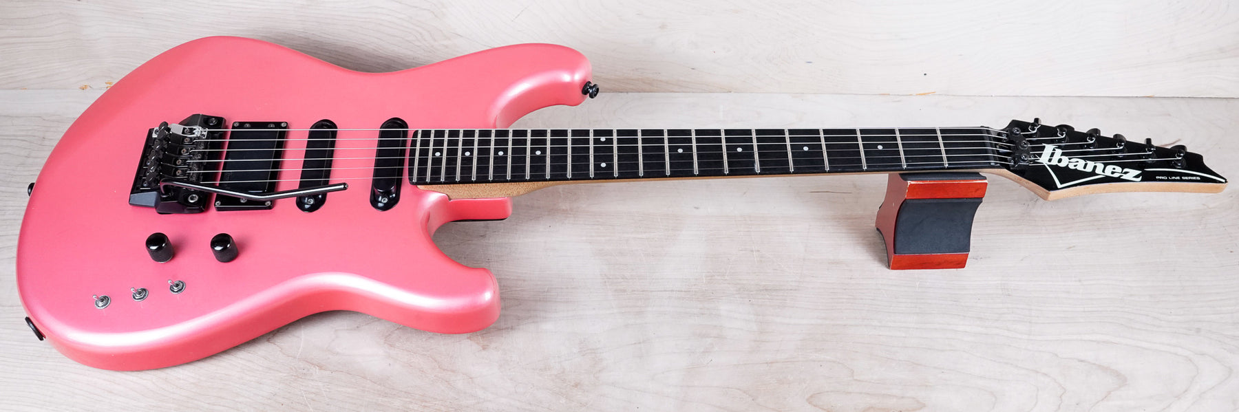 This made in Japan 1985 Ibanez Pro Line Series PR1440 plays and sounds great! This one is in the rare cherry ice finish that is not listed in the catalogs. This guitar is equipped with an Ibanez IBZ triple magnet humbucker in the bridge position and two Ibanez Super 7FT single coil pickups in the middle and neck positions. The controls also include a push/push duo sound tone knob and three mini switches for pickup selecting.