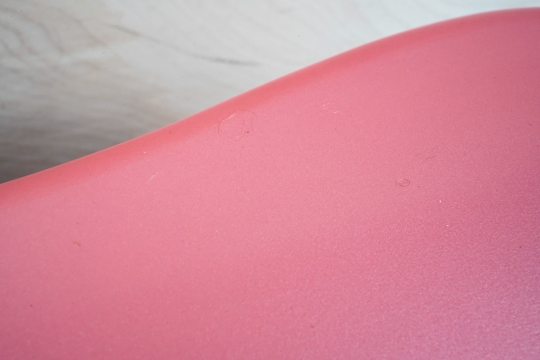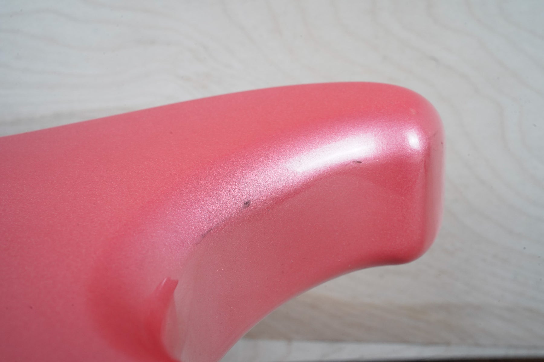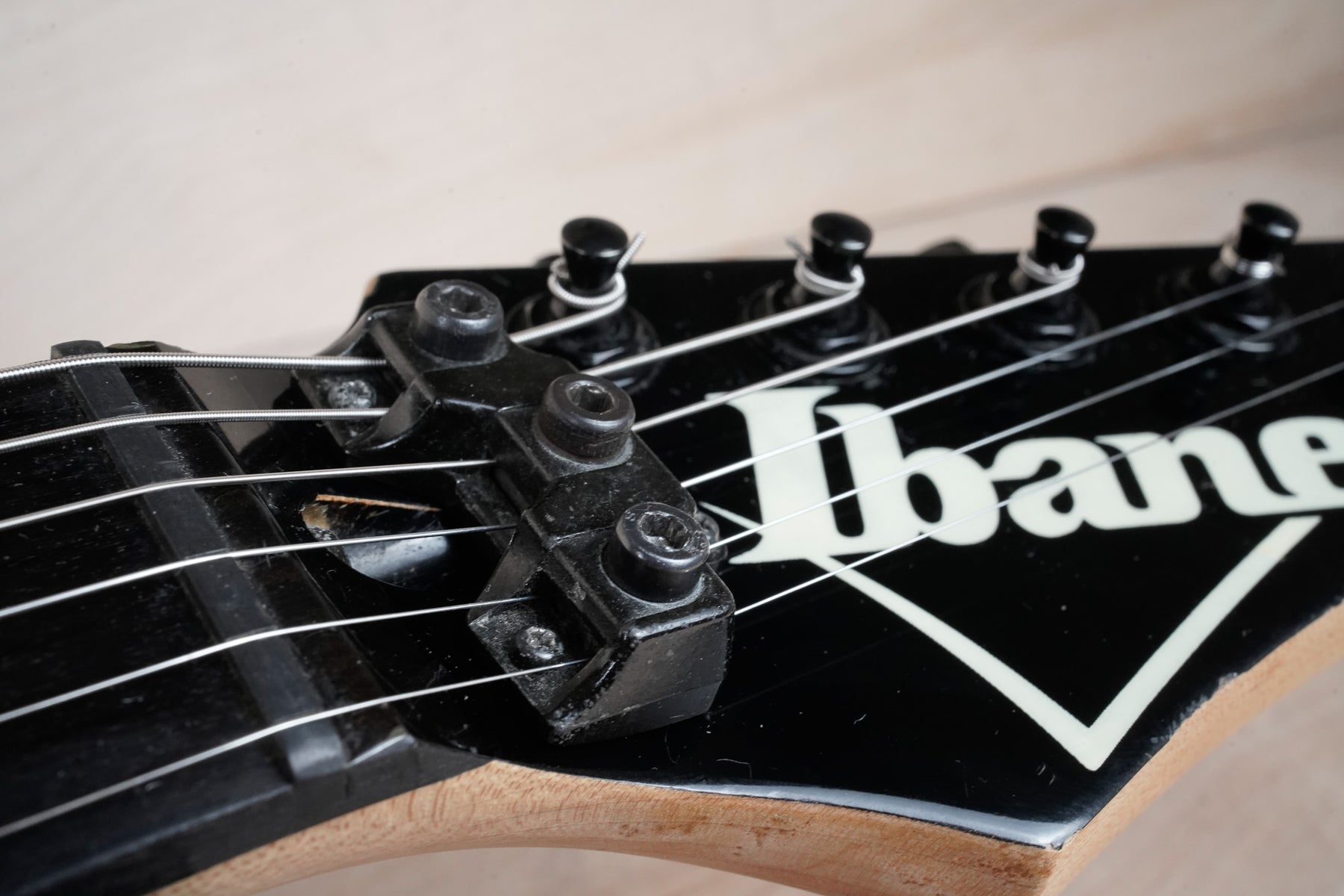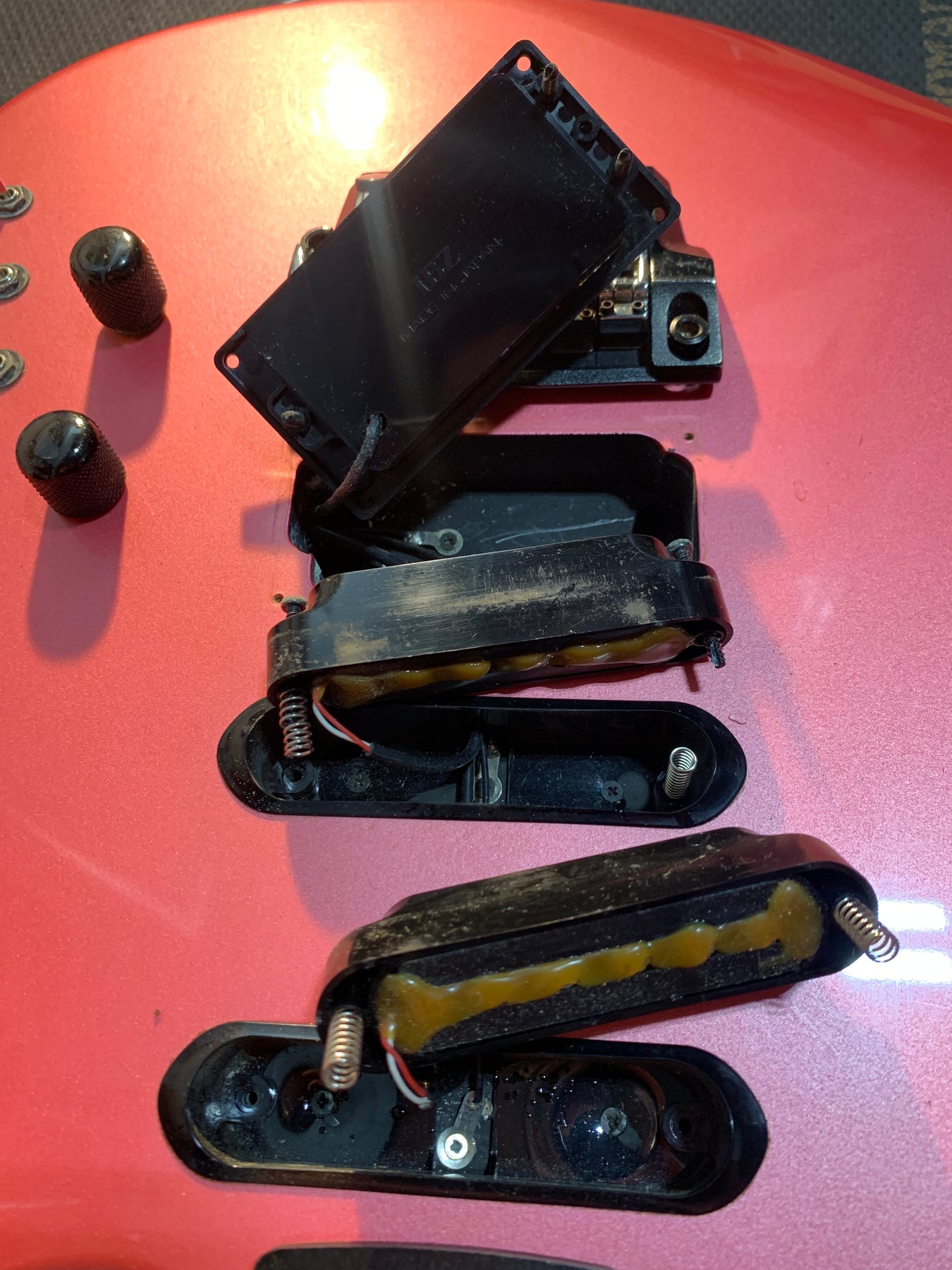 This guitar does show some cosmetic wear from over the years that includes various surface scratches, scuffs, and dents throughout the body with scuffs along the back of the neck and minor dings on the headstock. The lacquer on the back of the neck and headstock has worn from over time and the cherry ice finish has also faded slightly. The hardware shows normal tarnishing and the back spring and electronics covers have various scratches as well. The frets are still in nice shape overall and the electronics work as they should.