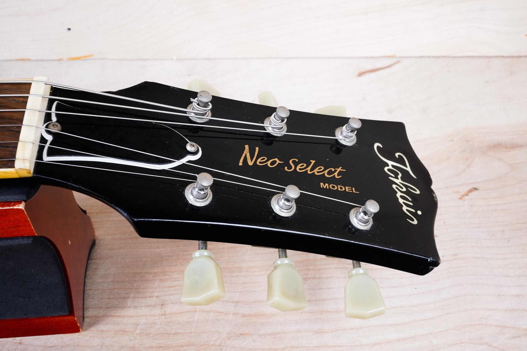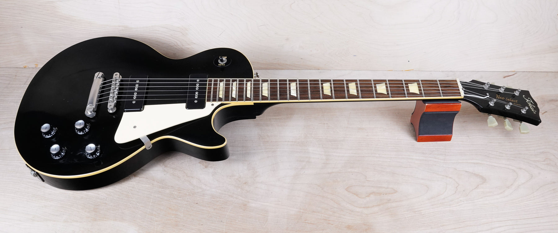 This made in Japan Tokai Neo Select LS85S plays and sounds great! The guitar is comprised of a maple top, mahogany back, one pice mahogany neck, and a rosewood fretboard. The neck profile has a medium "C" shape. The "Neo Select" guitars are the result of a collaboration between the Japanese guitar shop "NEO" and Tokai. These guitars include special order specs, often not found on other Tokai guitars.