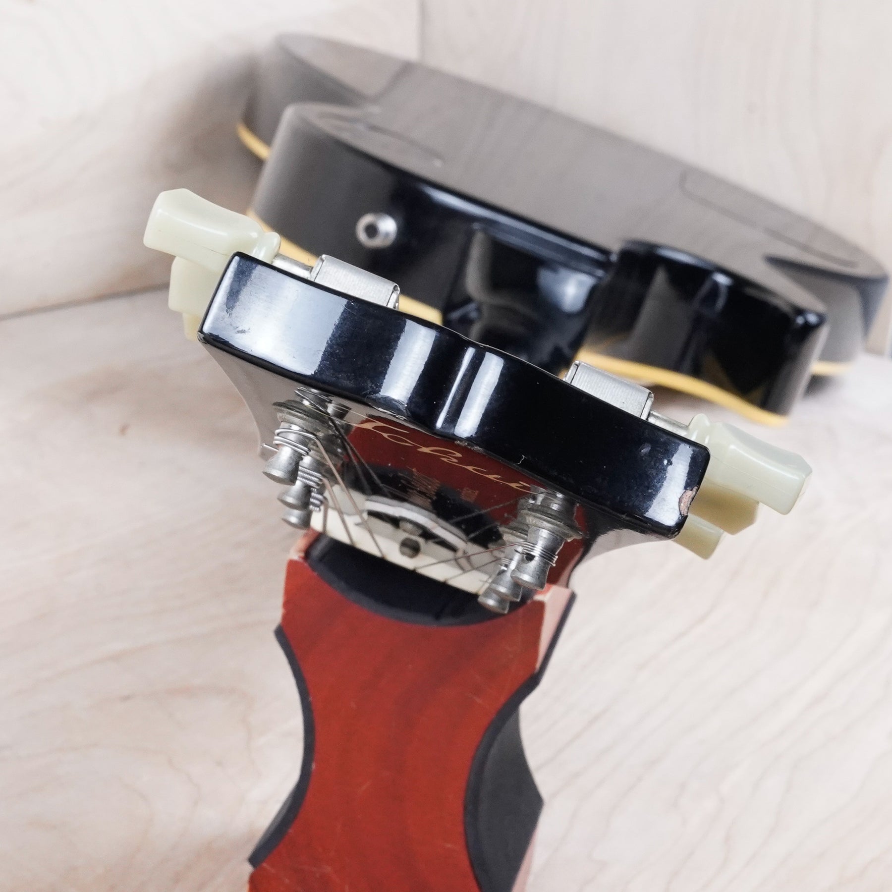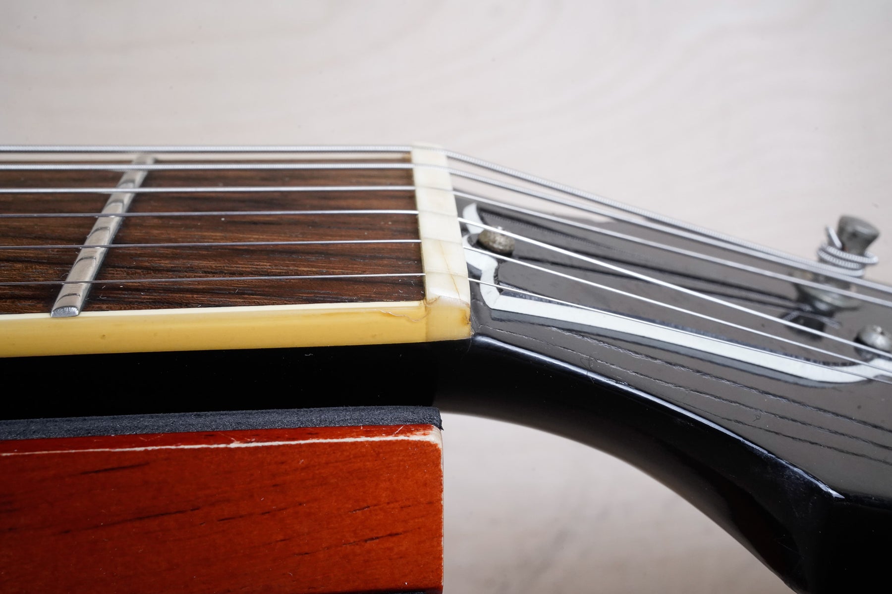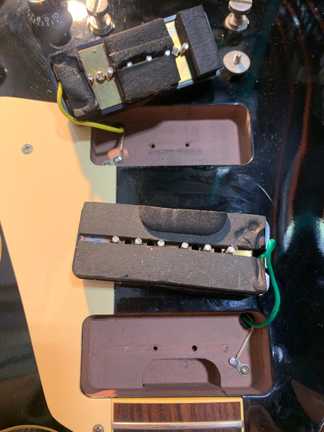 It appears that some of the electronics may have been replaced, though the pickups are original. The guitar currently has an ABR-1 bridge. This guitar otherwise appears to be original.
