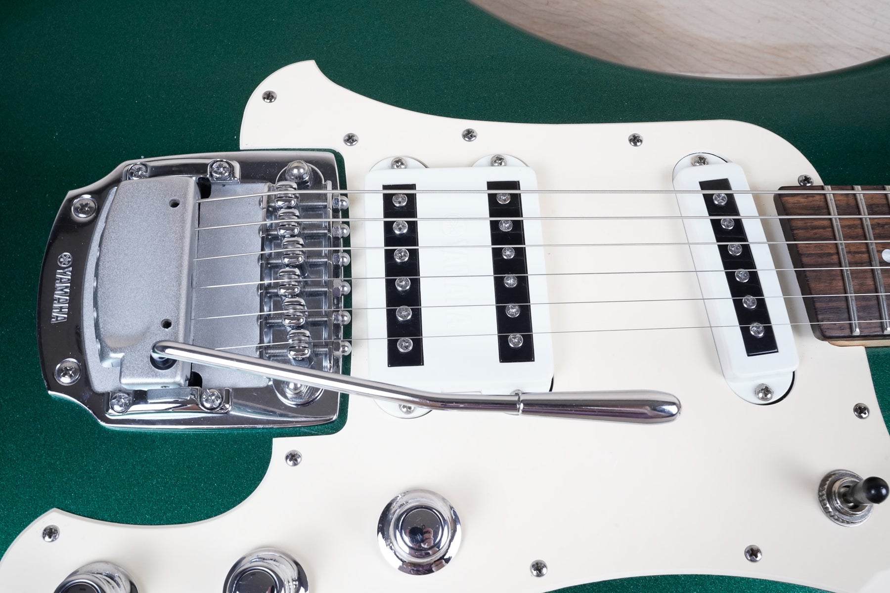 This Yamaha Flying Samurai SGV-300 plays and sounds great! This is a solid reissue of the 1960s model and features an alder body, "C" shape maple neck, and rosewood fretboard. The pearl green finish is also a really nice color!
