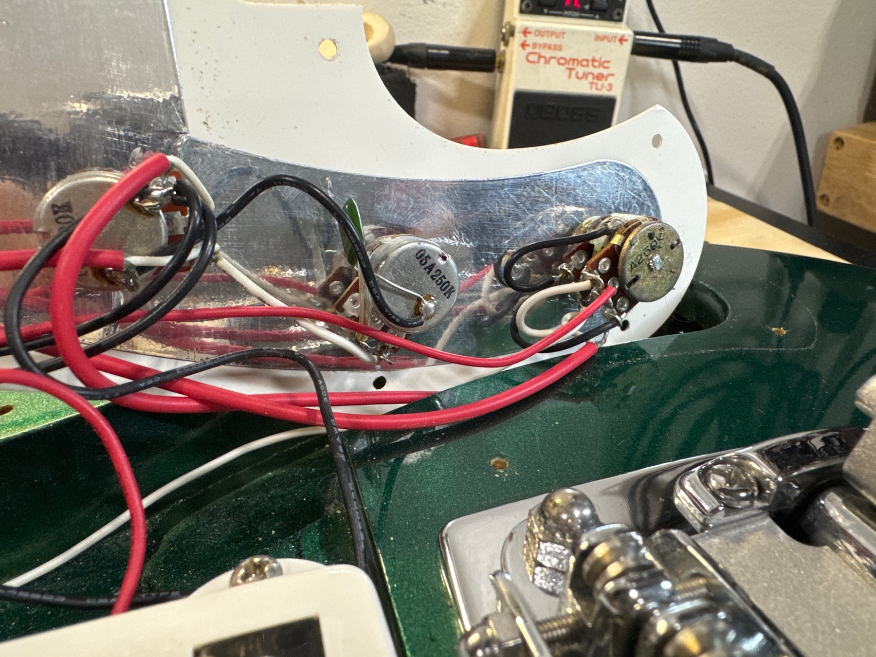 This guitar shows minor cosmetic wear from over the years that includes light surface scratches throughout the body and small dings on the headstock. The pickguard and plastic covers on the back of the body have also yellowed from over time. The frets are still in nice shape and the electronics work as they should.