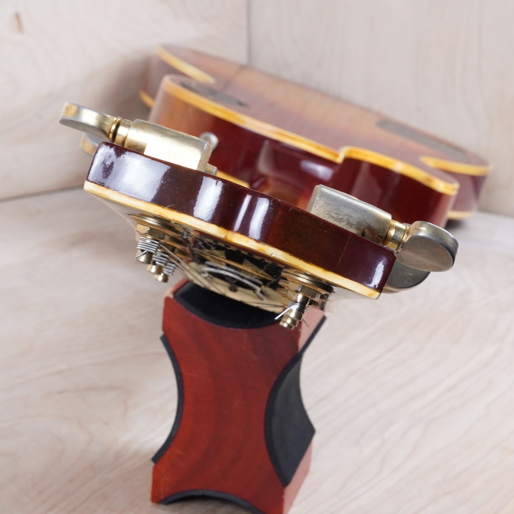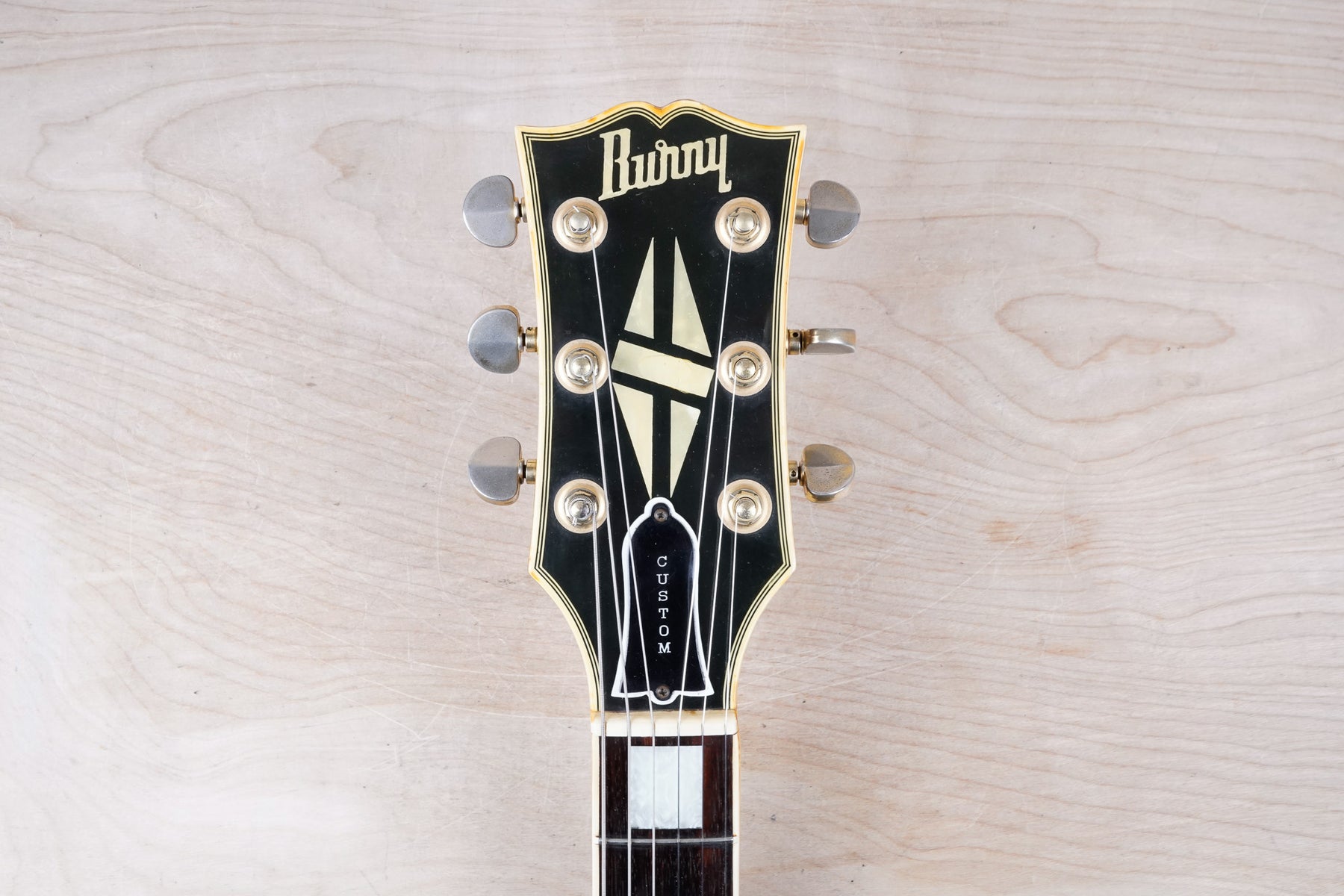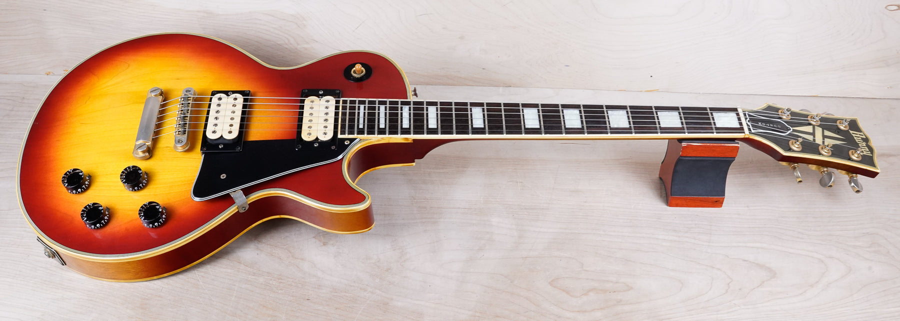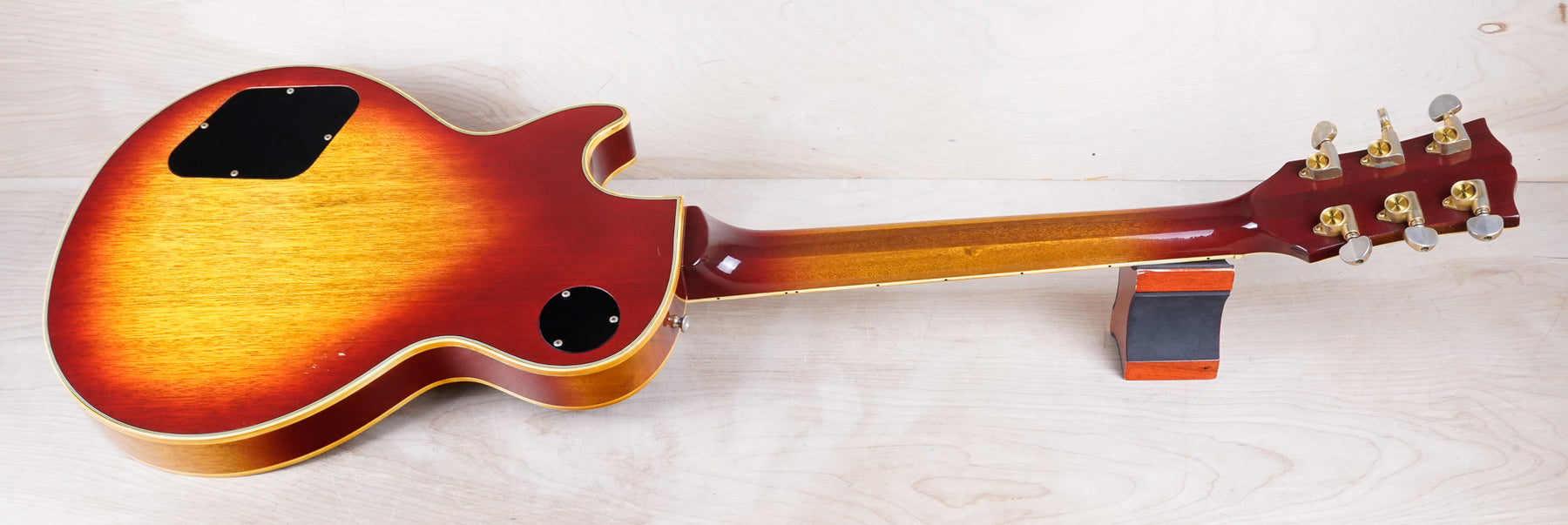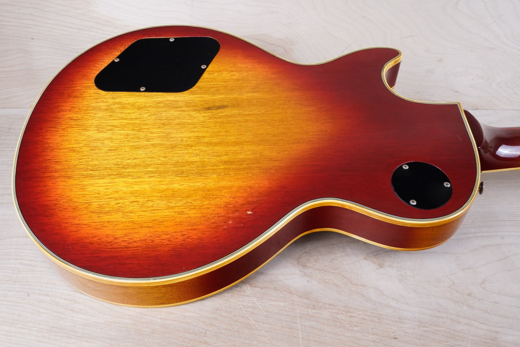 These guitars were being produced in Japan in parallel with Gibson's USA production during the heart of the Norlin era. This era of Japanese craftsmanship really kicked off the debate of if the guitars being made in Japan could rival or even beat those being manufactured in the US at the time. This model boasts similar specs to a Gibson Les Paul Custom of the same era, featuring a slimmer neck profile, volute, and 3 piece neck.