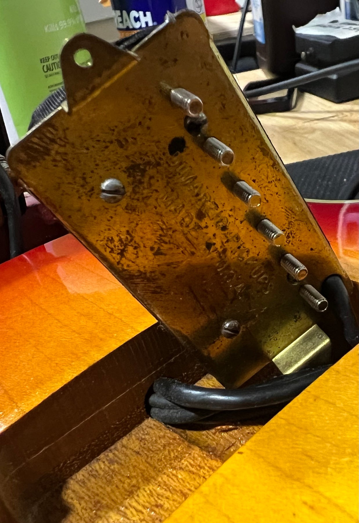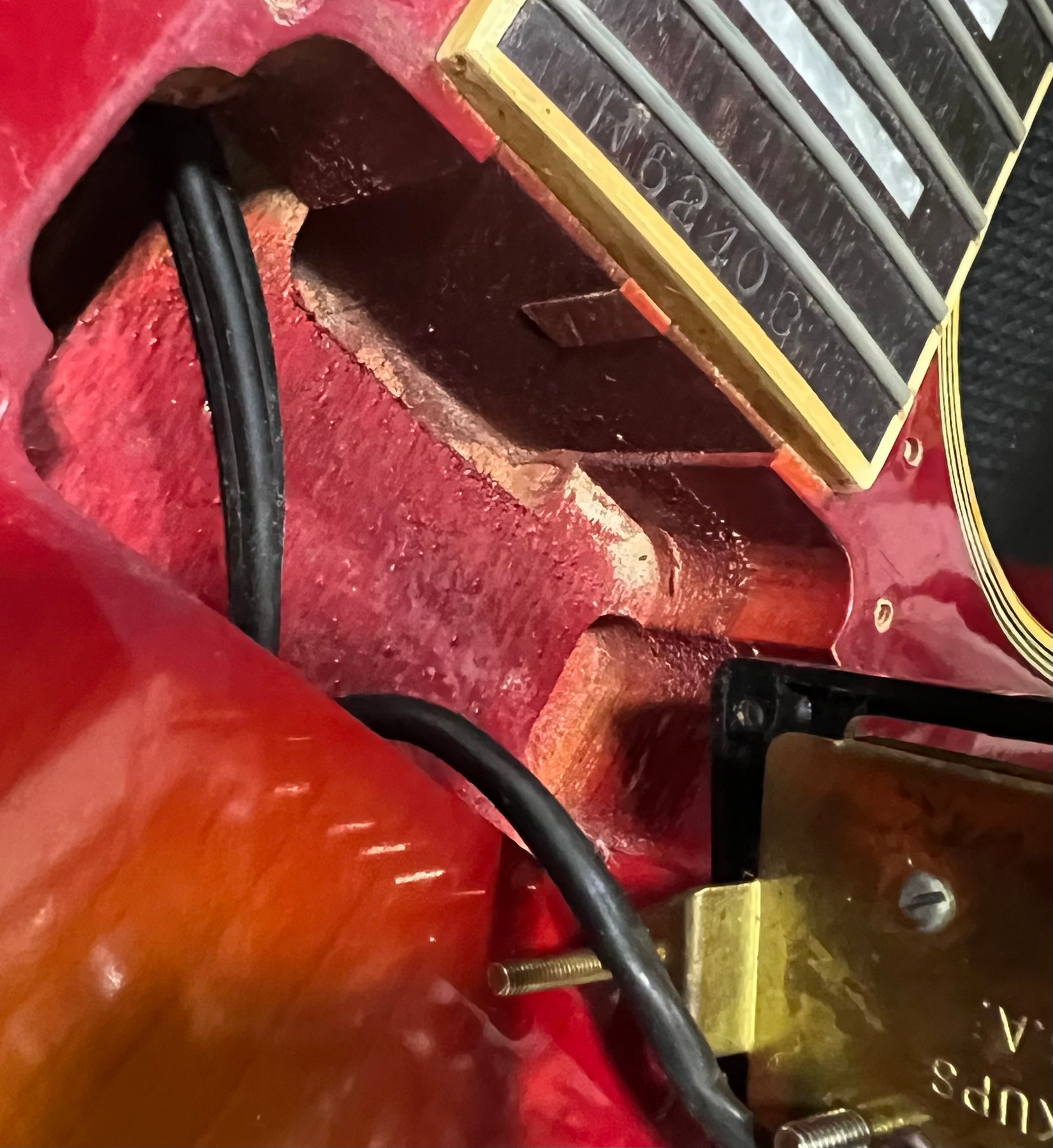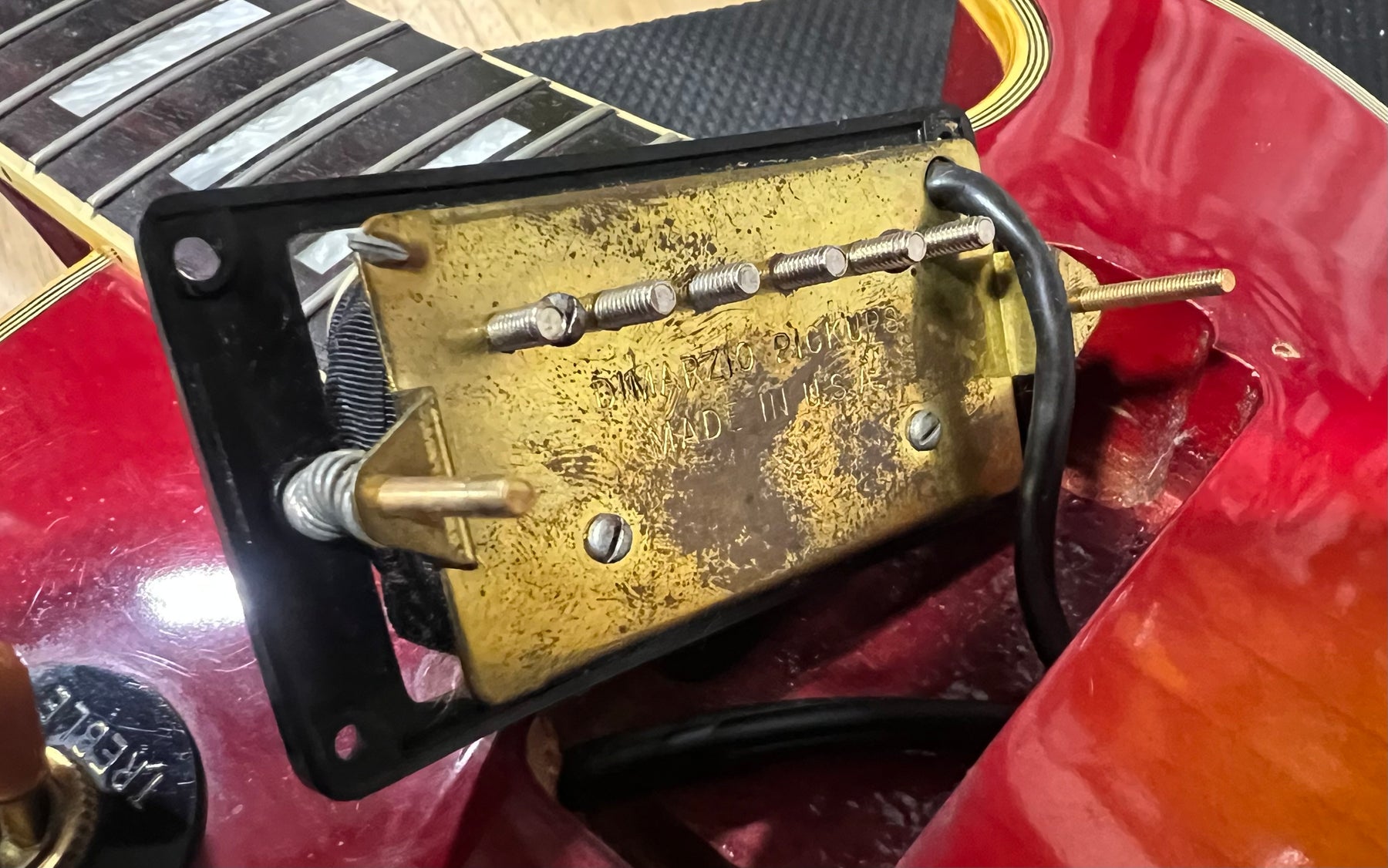 The pickups have been upgraded to Dimarzio PAFs from the 1970s as shown and the bridge pickup ring was replaced. This guitar is otherwise original.