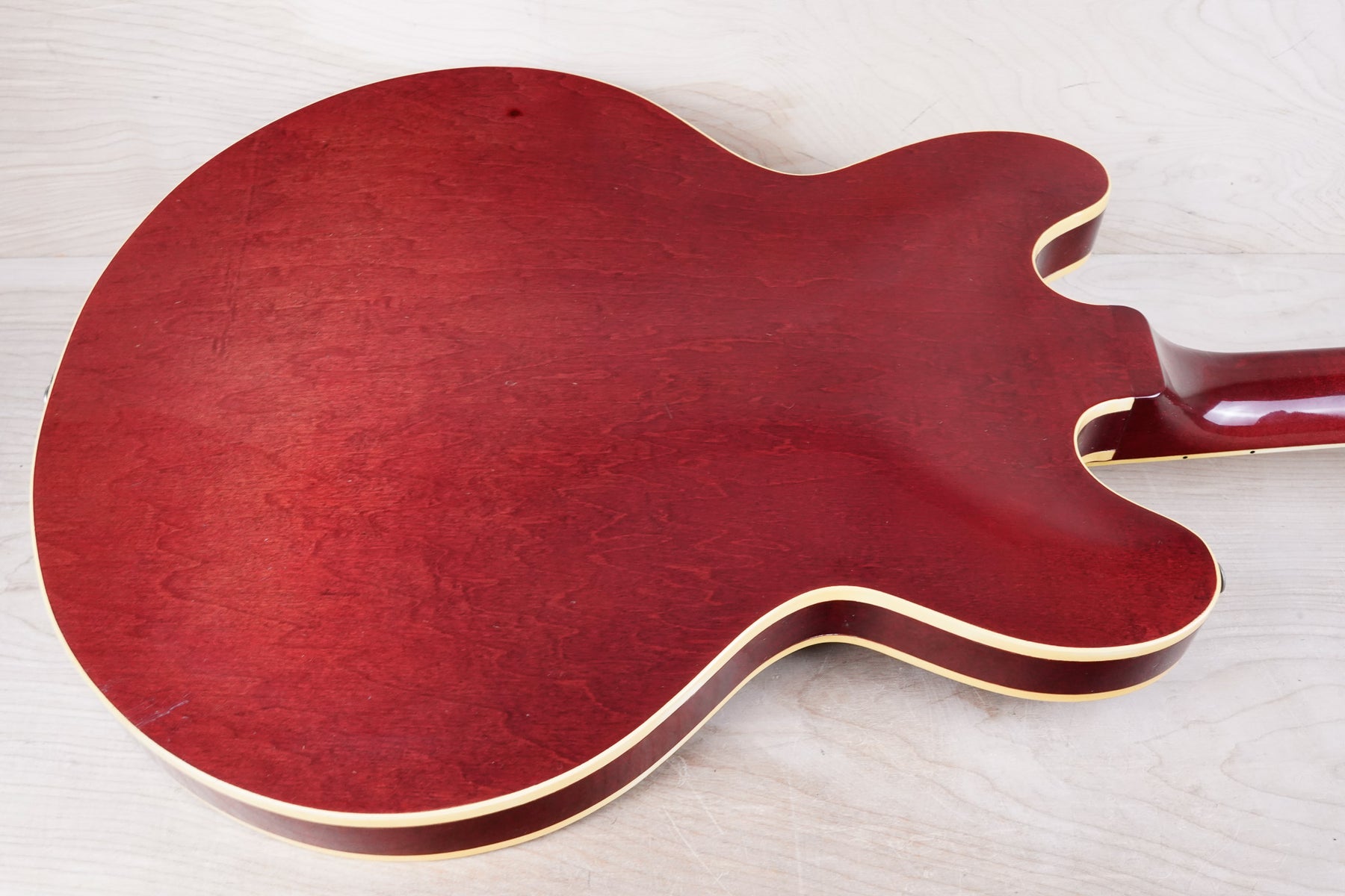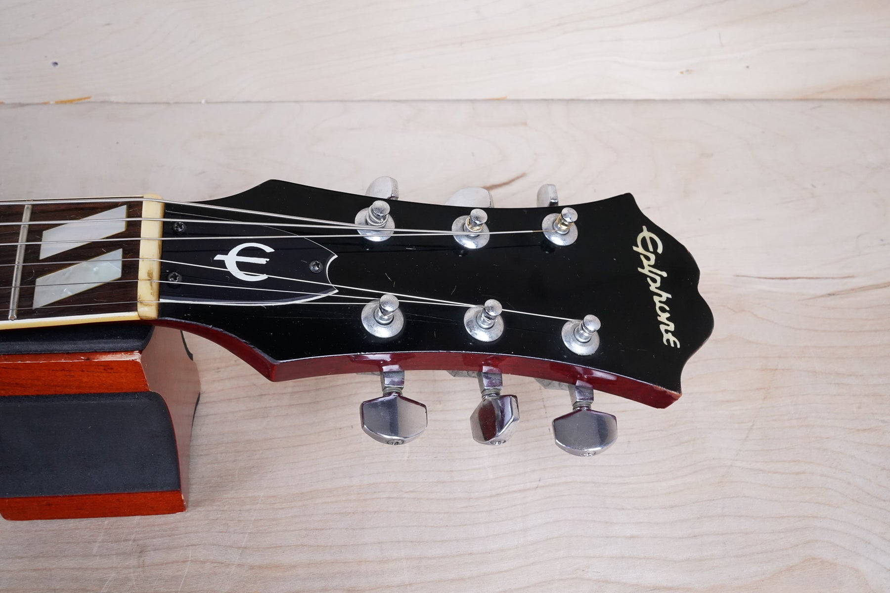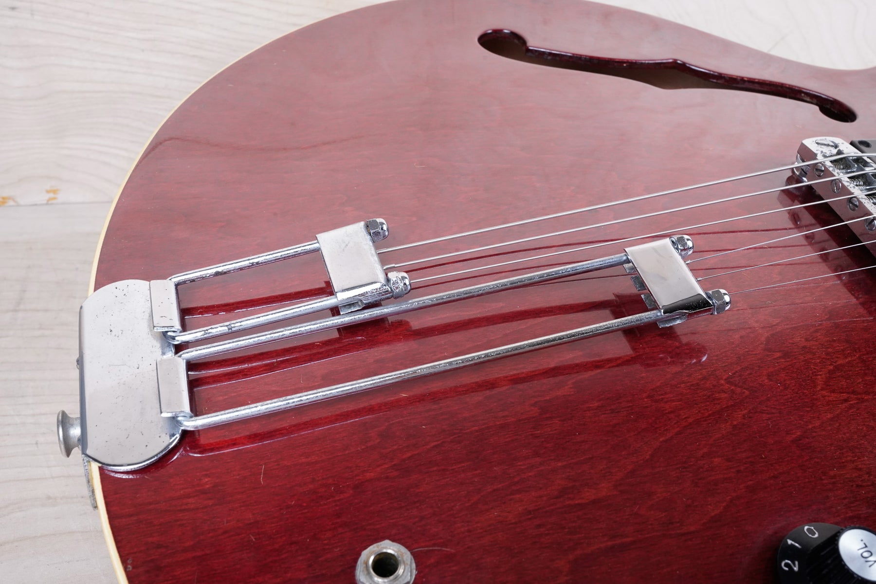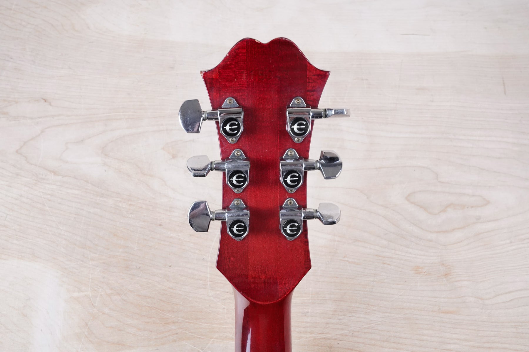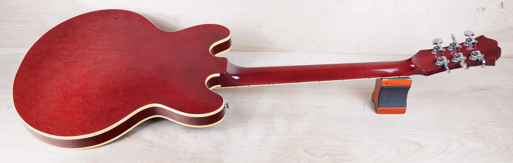 This vintage Japanese domestic Epiphone Riviera plays and sounds great! This guitar was produced in the Matsumoku Factory as an alternative to the Norlin Era 335 models. The guitar is comprised of a maple top, body, and neck with a rosewood fretboard and well sought-after Maxon humbuckers.