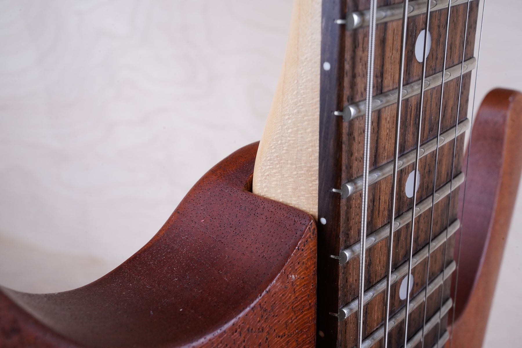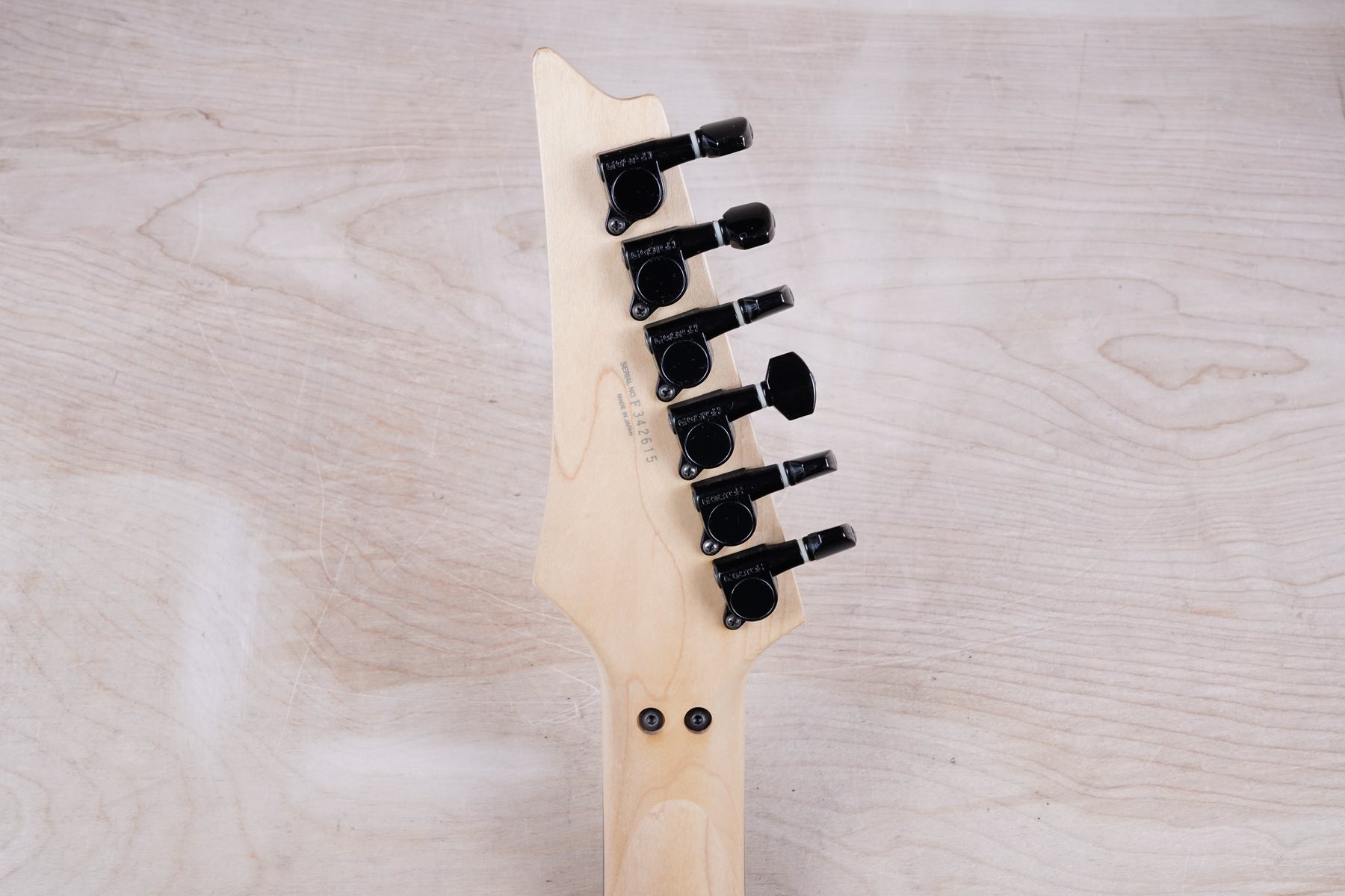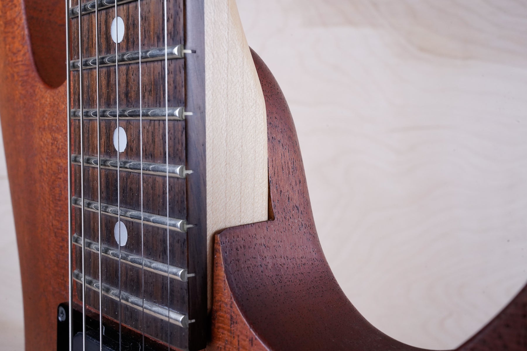 This Ibanez S470 plays and sounds great! The guitar is comprised of a mahogany body, maple neck, and rosewood fretboard. The neck has a super slim neck profile that feels great for faster styles of playing and the HSH pickup configuration offers a wide variety of different tones. The mahogany oil finish looks great!