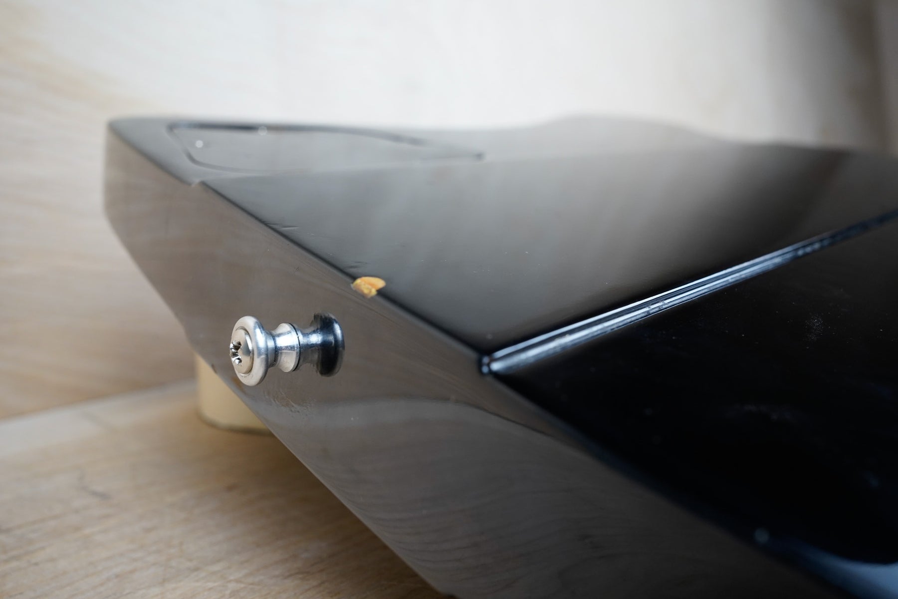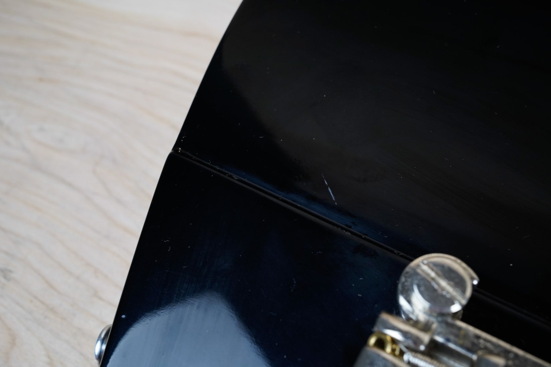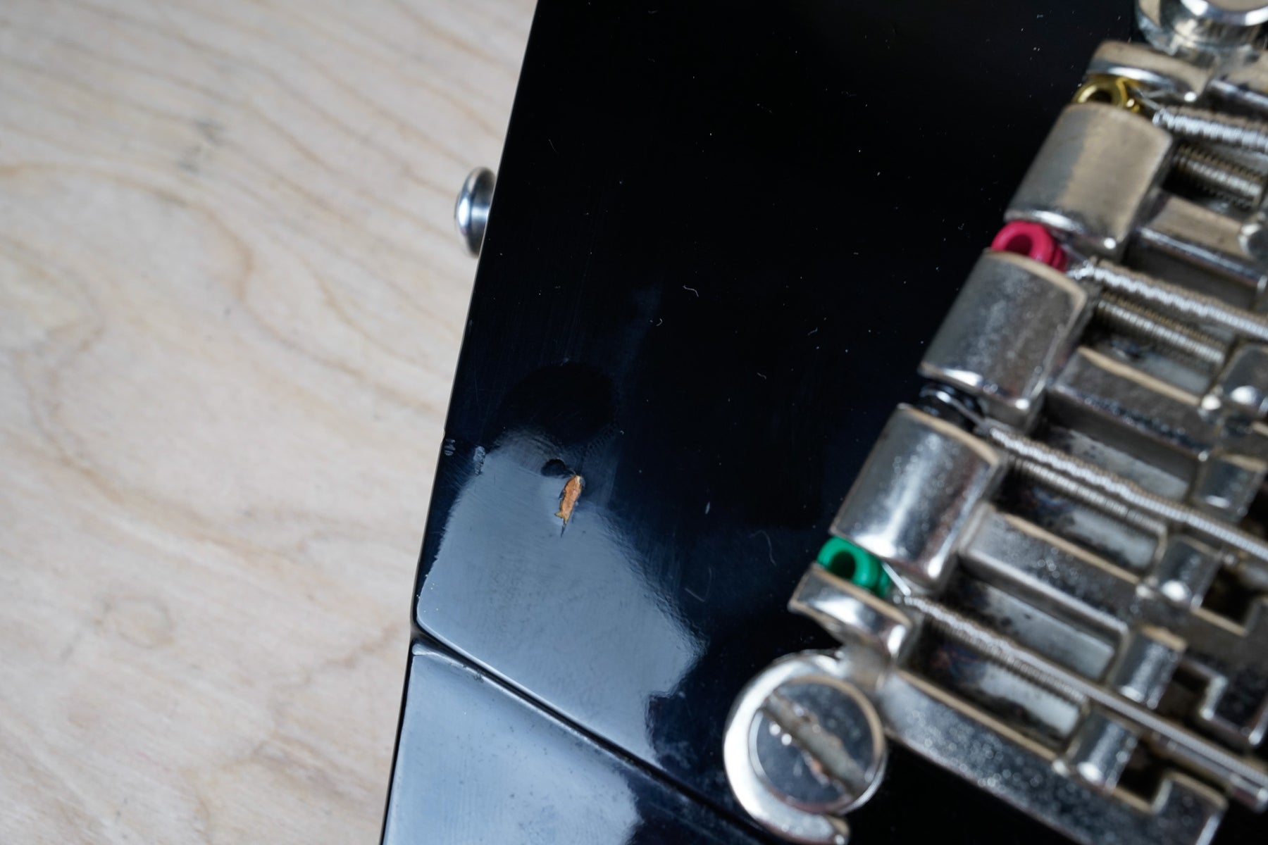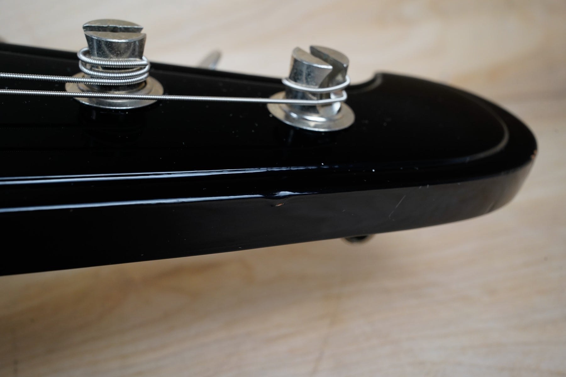 This bass does show some cosmetic wear from over the years that includes various surface scratches, scuffs, dents, and finish chips throughout the body with minor scratches and dings on the headstock. The hardware and pickups are also showing light tarnish from over time. The frets are used and lightly oxidized from the many years of play but still have plenty of life and the electronics work as they should.