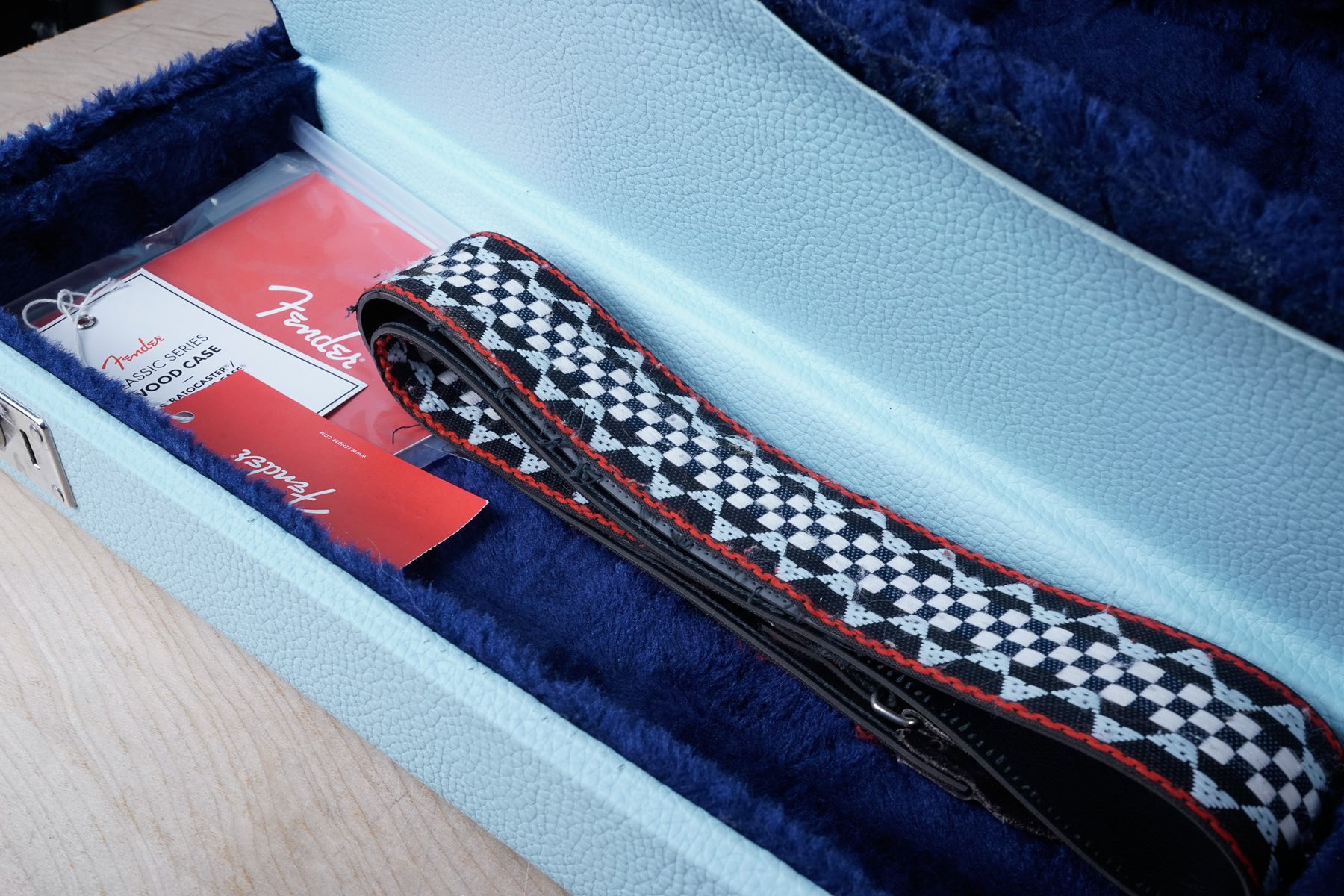 Includes the pictured Fender Sonic Blue G&G Hard Case, paperwork, and strap