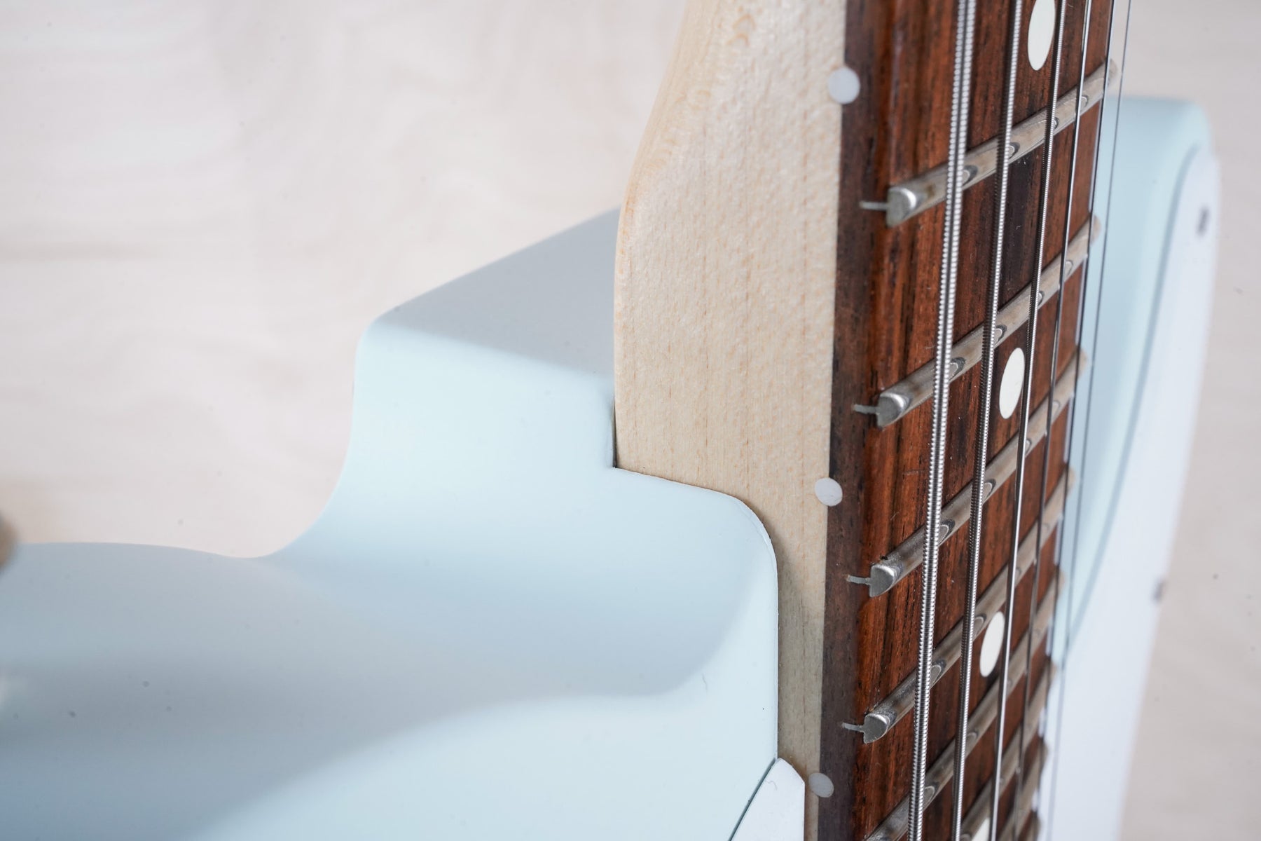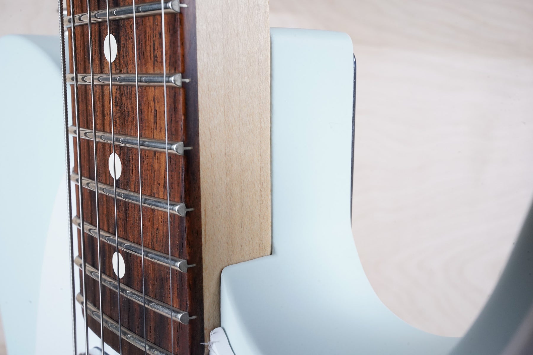 This guitar is in excellent shape overall apart from some minor scuffs in the satin finish along the sides of the body. The frets play great and the electronics work as they should.