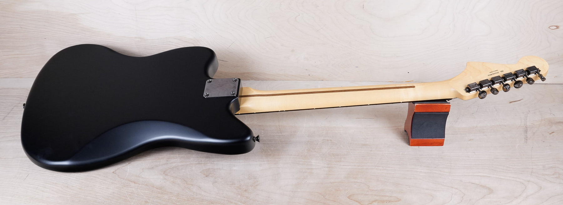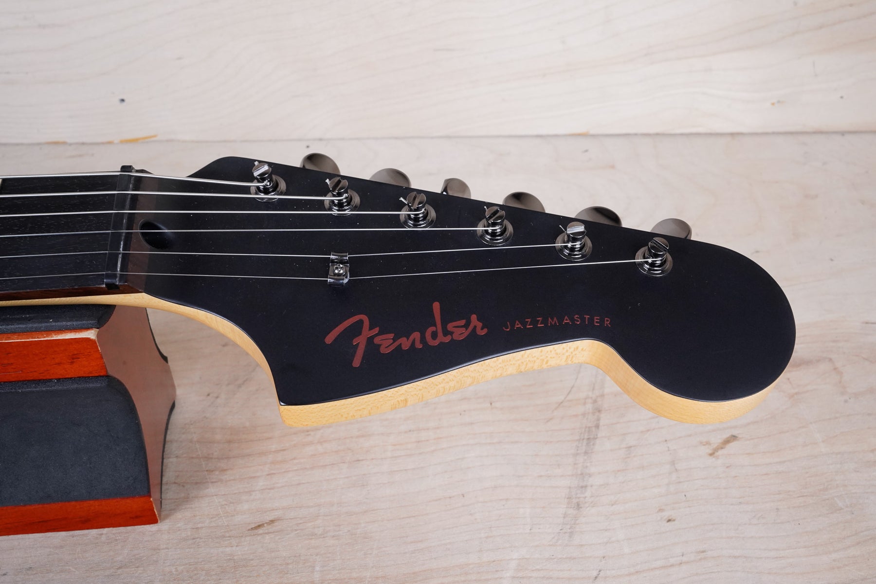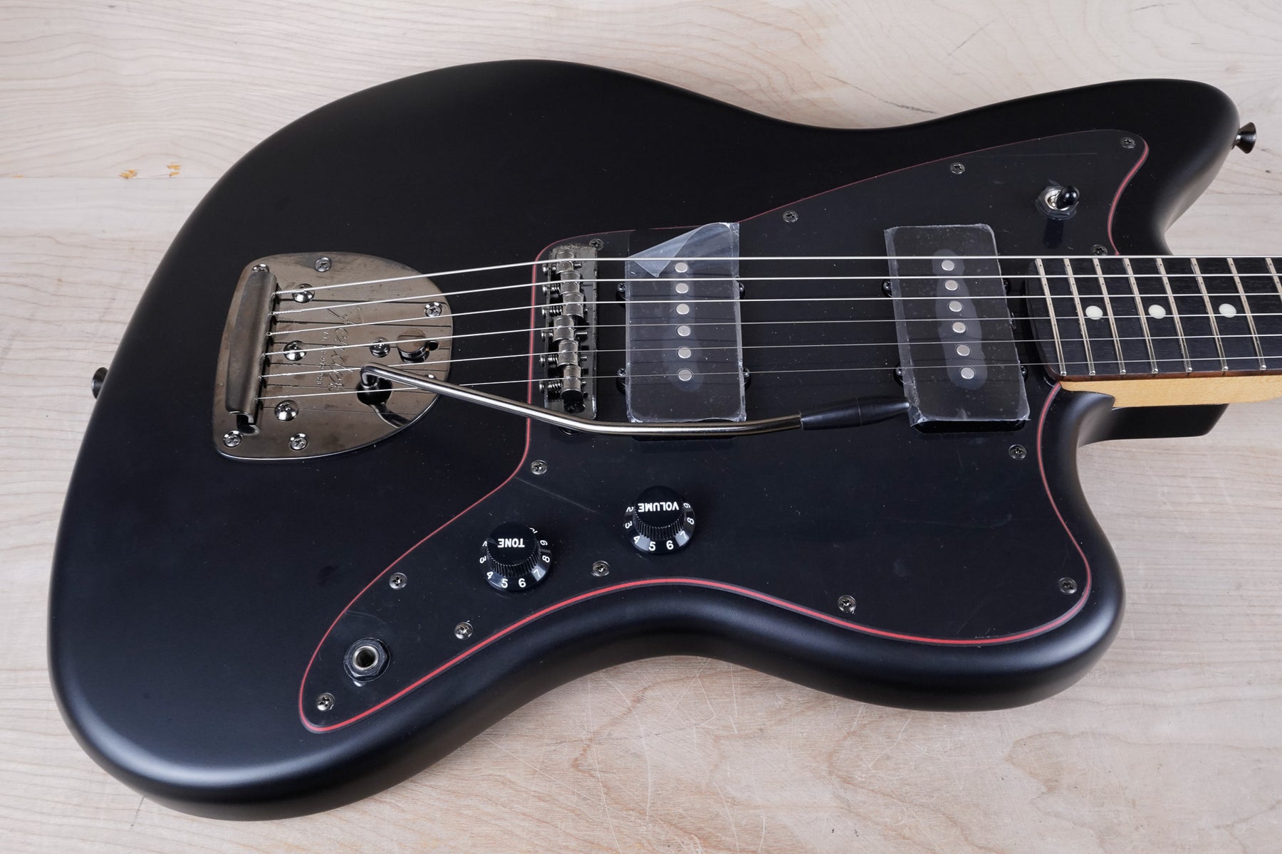 This made in Japan Limited Fender Hybrid II Jazzmaster Noir plays and sounds great! This guitar has a super sleek appearance provided by the black satin urethane finish, black hardware/plastics, and red accents. The guitar is comprised of an alder body, modern "C" shape maple neck, and ebony fretboard.