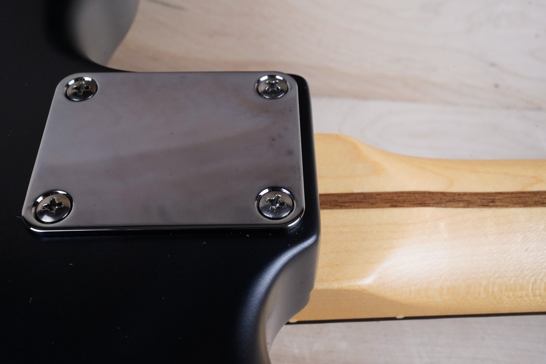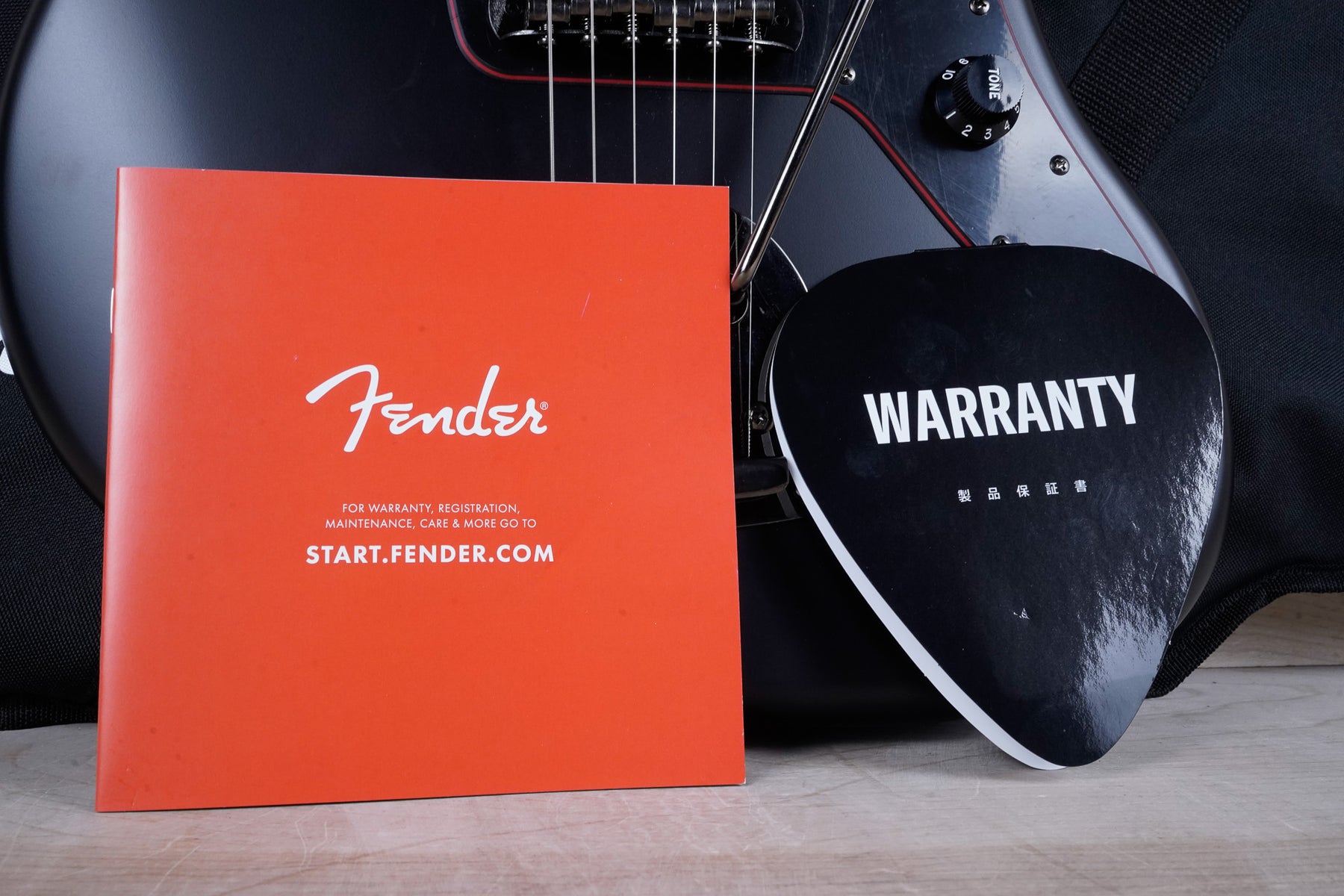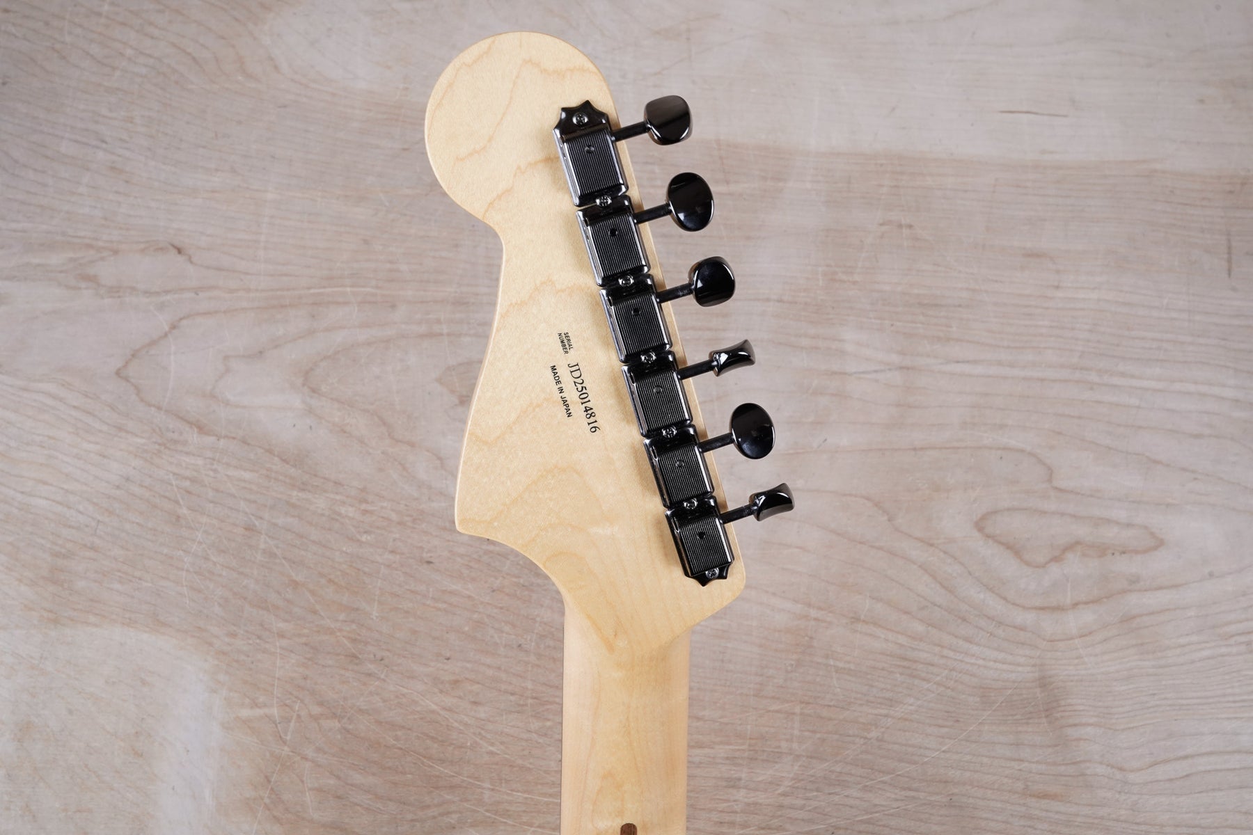 This made in Japan Limited Fender Hybrid II Jazzmaster Noir plays and sounds great! This guitar has a super sleek appearance provided by the black satin urethane finish, black hardware/plastics, and red accents. The guitar is comprised of an alder body, modern "C" shape maple neck, and ebony fretboard.
