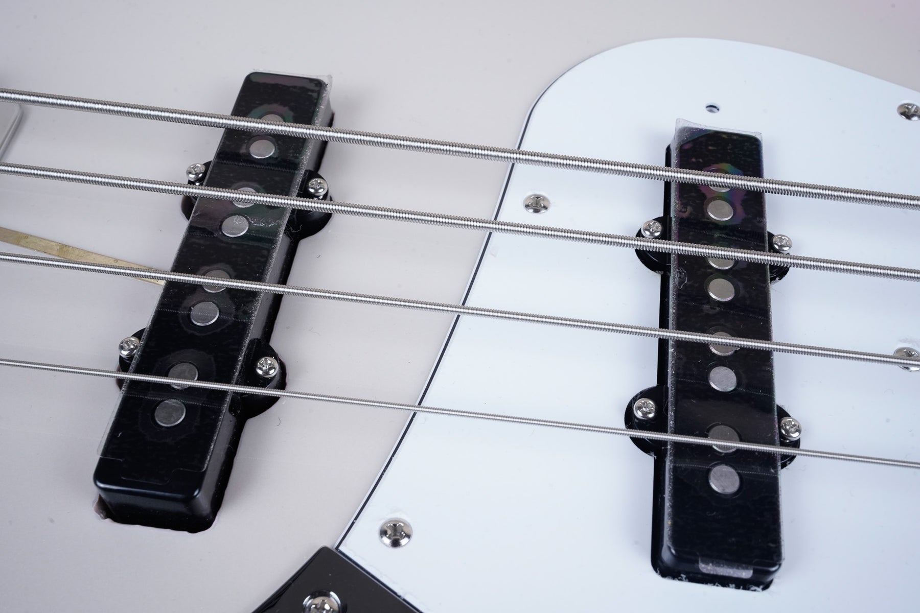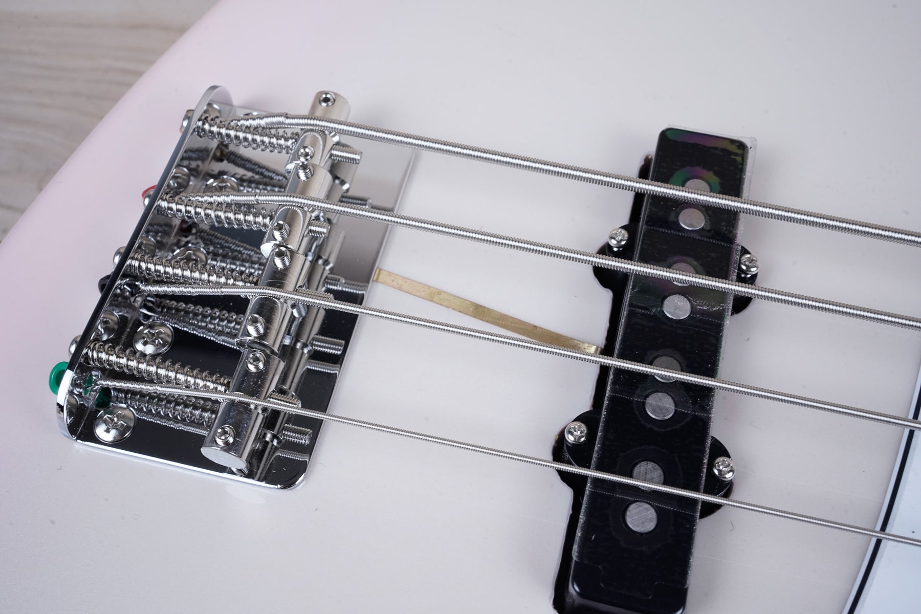 This bass has had very little play time and is in excellent shape! The plastic coverings are even still present on the pickups and tuners.