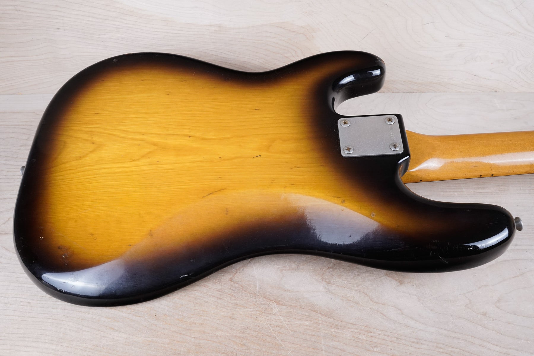 This made in Japan vintage Tokai Hard Puncher PB-80 plays and sounds great! The aluminum pickguard is a spec that was inspired by the late 1950s era Fender pickguards. The tone woods include an alder body, medium "C" shape maple neck, and rosewood fretboard. The lacquer finish has aged beautifully over time!
